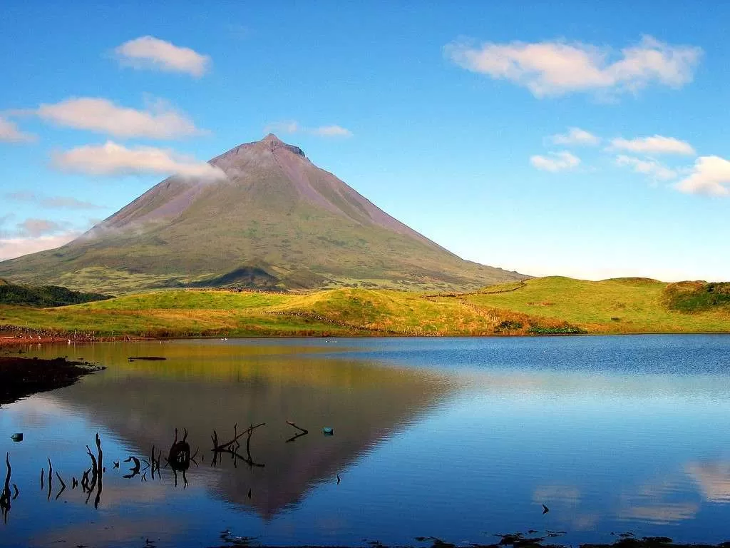 Огромный вулканический конус горы Пику, третьего по величине вулкана в Атлантическом океане, занимает доминирующее положение в ландшафте острова. В его главном кратере разместился конус из лавы, получивший название Пикинью (Piquinho), на вершине которого неизменные фумаролы напоминают о вулканической природе острова. На высоте приблизительно 1250 метров над уровнем моря, откуда начинается пеший подъем в горы, уже видна бóльшая часть острова, а также соседние острова Фаял (Faial) и Сан-Жоржи (São Jorge). Хотя подъем на вершину горы утомляет, однако восполняется волшебными, уникальными по красоте панорамами, которые в безоблачные дни преподнесут нам в качестве дополнительного сюрприза изумительный вид на острова Грасиоза (Graciosa) и Терсейра (Terceira).