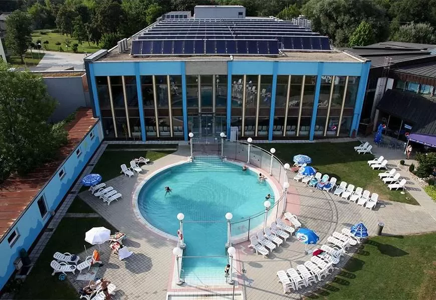 В 1996 году был открыт комплекс термальных бассейнов с общей площадью 1.460 кв.м водной поверхности, который состоит из 10 крытых и открытых бассейнов с термоминеральной водой (температура воды 28°С – 37°С), джакузи, водопадов, подводных массажей, бассейна для контрастных ванн, бассейна для лечения по методу Кнайпа и несколько детских бассейнов с подогреваемой водой.