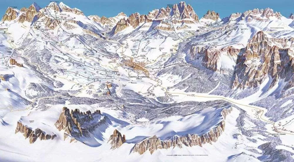 Зона катания Кортины состоит из двух, не связанных между собой районов, расположенных на противоположных склонах живописного ущелья по обе стороны от поселка. В целом в регионе катание очень разнообразное и подходит для любого уровня подготовки. Для начинающих лыжников хорошо подойдут склоны зоны Сокрепес, т.к. трассы здесь не сложные, довольно пологие и длинные. Для лыжников среднего уровня оптимальным по сложности представляется зона Тофана, ну а продвинутым лыжникам советуем попробовать спуститься с вершины Форчелла- Стауниес (2930). Для сноубордистов условия в районе Трофана, есть Фан-парк в районе Фалория.