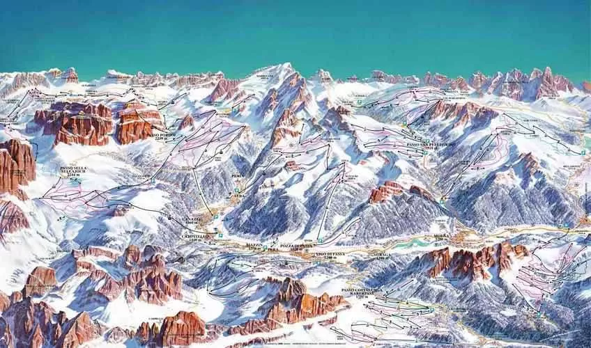 Три основные зоны катания долины Валь ди Фасса: