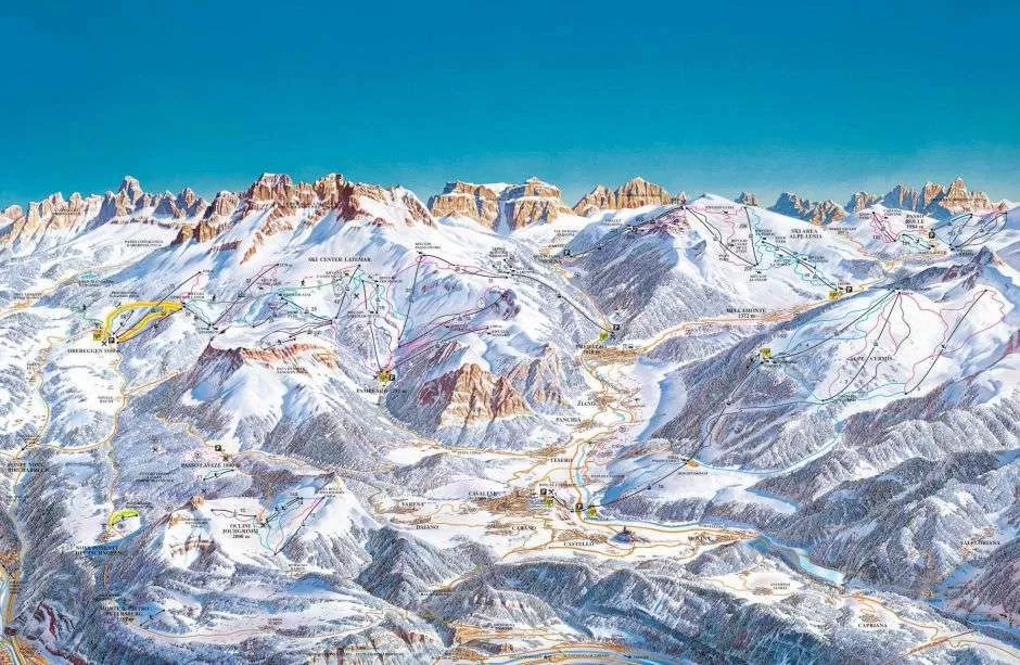 Долина Фьемме располагает пятью горнолыжными зонами. Ски-пасс Валь-ди-Фьемме – Оберегген охватывает их целиком: Альпе-Чермис, Лыжный центр Латемар (Оберегген-Пампеаго-Предаццо), Белламонте – Альпе-Лузия, перевалы Пассо-Лаваце – Пассо-Оклини и Пассо-Ролле.В сумме горнолыжная территория долины дает 100 км спусков средне-легкой сложности. Они оборудованы современной системой искусственного оснежения, двумя сноу-парками и двумя санными трассами.Из лучшего можем отметить Лыжный центр Латемар – самый крупный и интересный регион, куда можно попасть из городка Предаццо, черную трассу «Олимпия» в Альпе-Чермис протяженностью 6 км и северные склоны района Альпе-Лусиа. А на склонах Пассо-Ролле всегда устойчивый снежный покров.