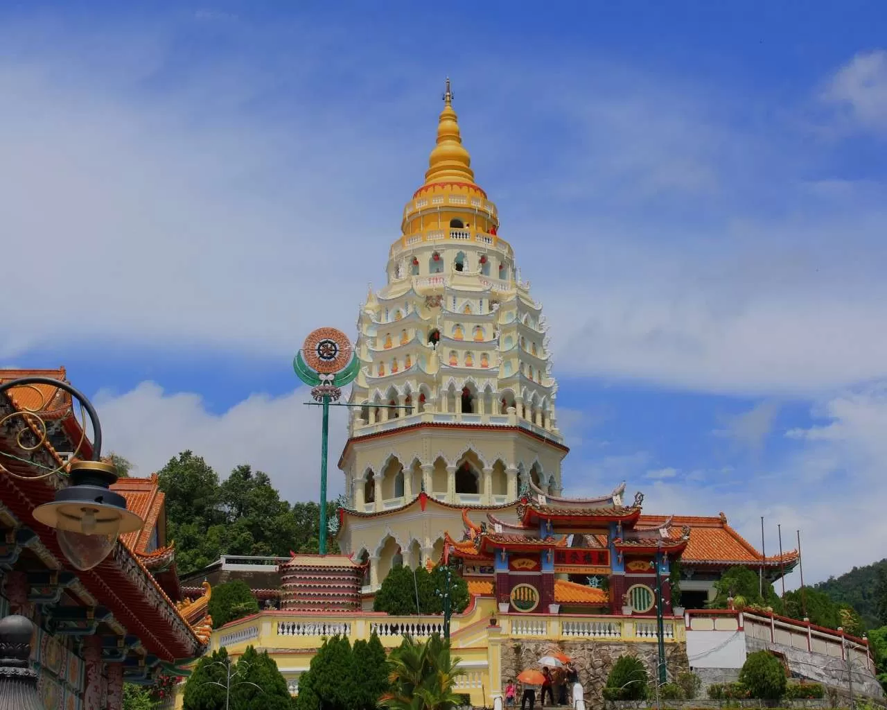 Храм Кек Лок Си - самый большой и красивый храм в Юго-Восточной Азии. Он расположен в центре острова на высоком холме в маленьком городе Эйр Итам. Храм сочетает в себе элементы китайской, тайской и бирманской архитектуры. Перед храмом находится широкая площадь для молитв. В семиэтажной пагоде расположено огромное количество статуй Будды, привезённых из разных стран мира. А главная гордость храма - огромная статуя богини милосердия Гуаньинь и черепаховая отделка храма. Согласно китайскому поверью, черепахи являются символом долголетия, и в храме Кек Лок Си посетители могут прибавить пару лет жизни, покормив живых черепах, обитающих в пруду.