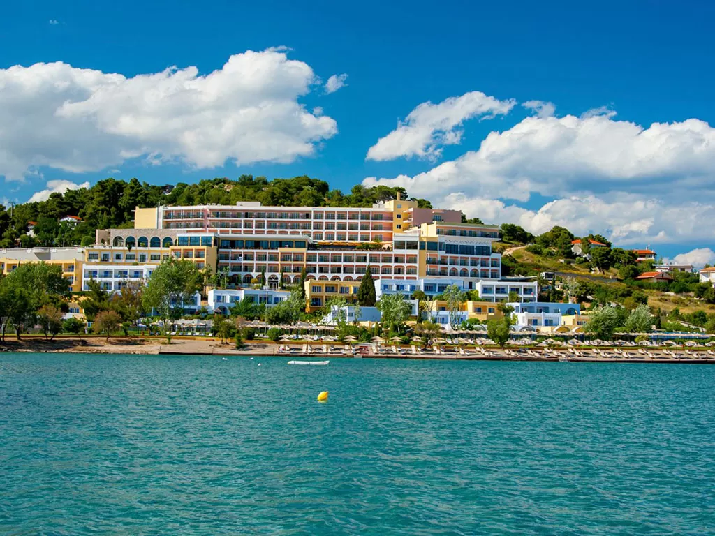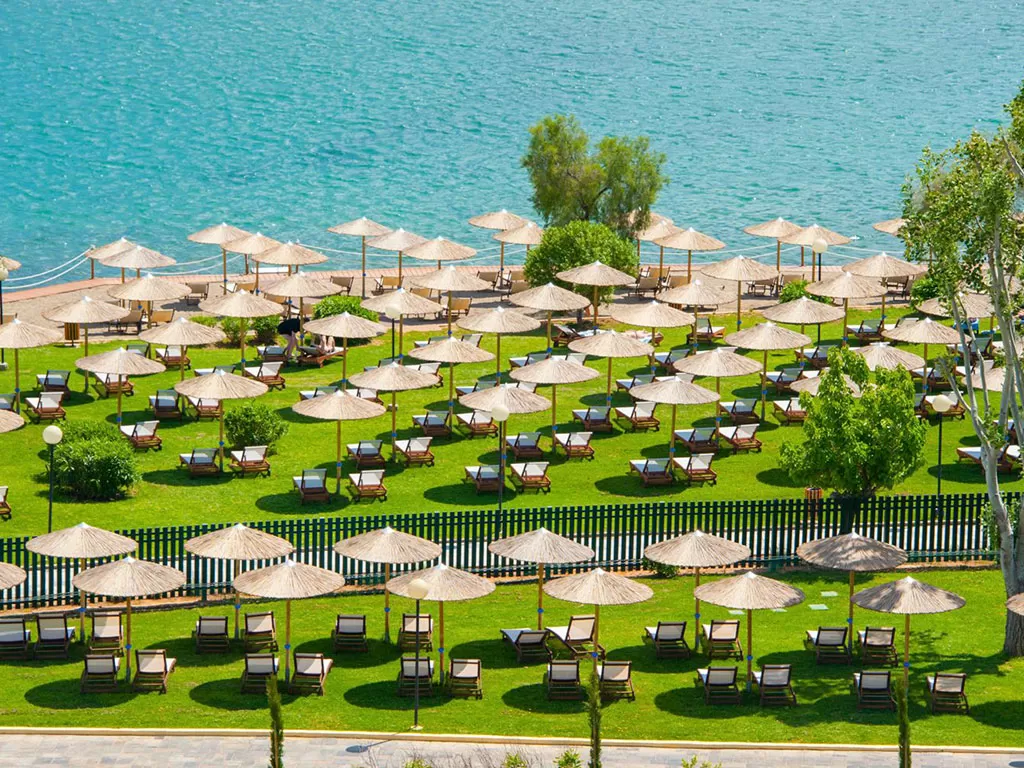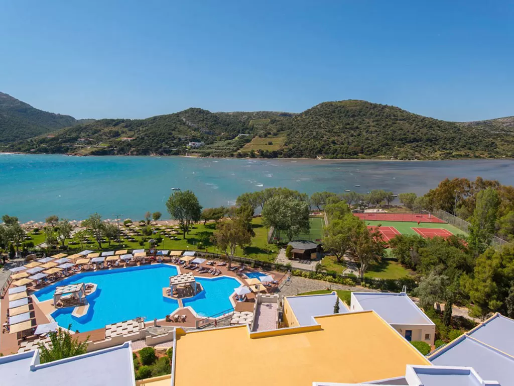 Поселок Враврона, в 5 км от пос. Артемис, в 10 км от пос. Маркопуло, в 15 км от порта Рафина, в 35 км от Афин, 11 км от международного аэропорта «Эл. Венизелос» г. Афины. Отель состоит из шестиэтажного основного здания и бунгало. Популярный отель расположен на берегу моря. Обширная территория, просторные комфортабельные номера, рестораны и бары, бассейн, магазины, интернет, услуги для детей, конференц-центр, роскошный Спа-центр, водные виды спорта, теннис, обслуживание высокого уровня.