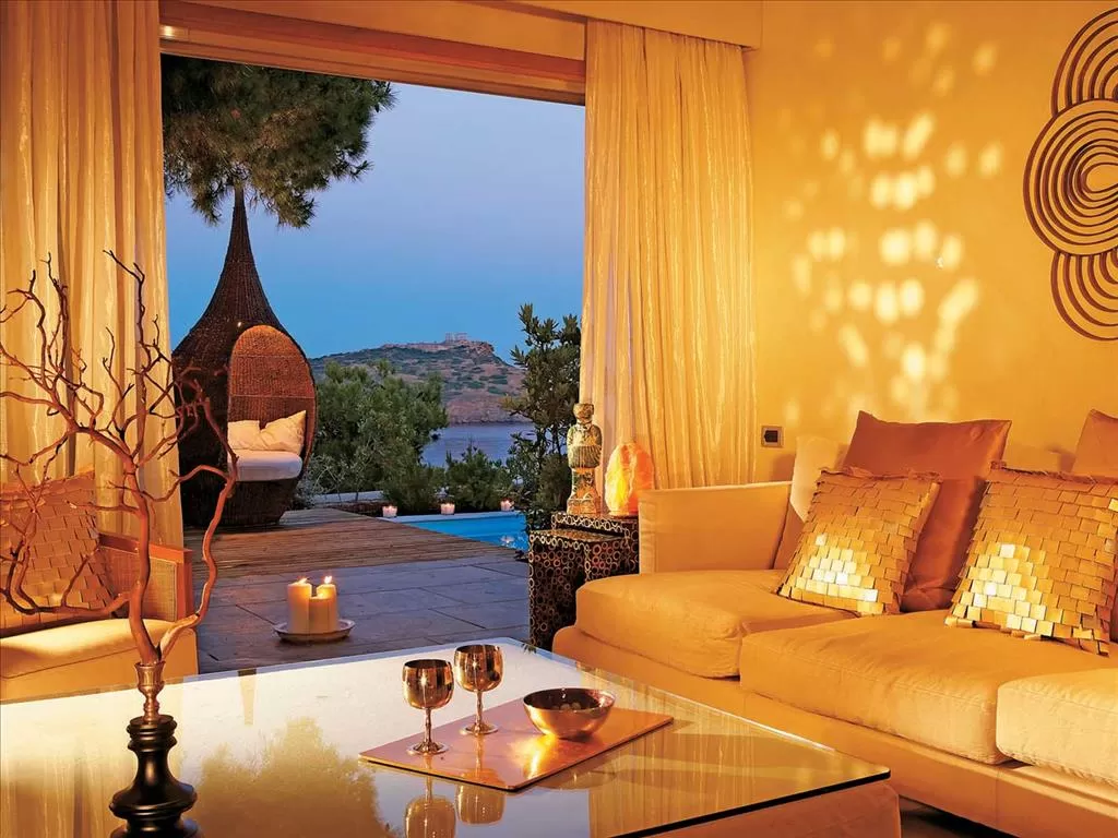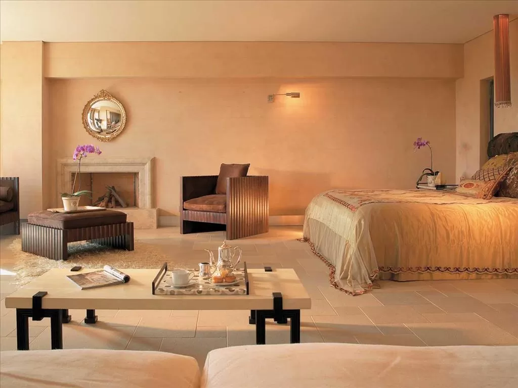 Deluxe Bungalow Private Pool *Famous the Club c видом на море (~ 36 кв.м) Бунгало в терракотовых тонах расположенные амфитеатром на пологом склоне холма, живописно вписались в окружающий пейзаж. Камень, дерево и другие натуральные материалы придают этим стильным открытого плана номерам особую атмосферу. Во всех бунгало двуспальная кровать или две односпальные, диван-софа и обеденный стол. Ванная расположена за декоративной раздвигающейся ширмой, отдельный WC. В саду большей площадью - летняя мебель для отдыха и небольшой частный бассейн.