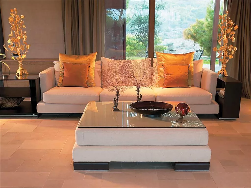 Тип 3: Основная спальня с кроватью королевского размера объединена в единое открытое пространство с гостиной и столовой зонами. Отдельная малая спальная с двуспальной кроватью идеальна для размещения детей. В ванной, отделанной мрамором, эксклюзивные косметика и махровые халаты. Дверь из просторной гостиной ведет на террасу с летней мебелью.