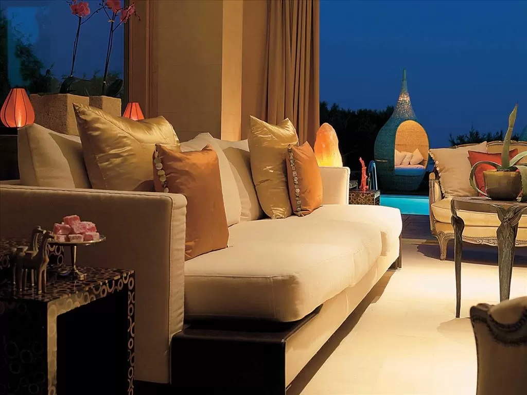 В холле-гостиной открытой планировки – столовая и зона отдыха, в основной спальне – кровать королевского размера, в малой спальне – две софы, легко трансформирующиеся в кровати, для детей. Богатым дизайном отличается и отделанная мрамором ванная комната с махровыми банными халатами и эксклюзивными туалетными принадлежностями. Терраса с частным бассейном обставленна бамбуковой и деревянной мебелью. Во всех виллах: кофе-машина, LCD ТV, спутниковые каналы, CD/DVD-плейер.