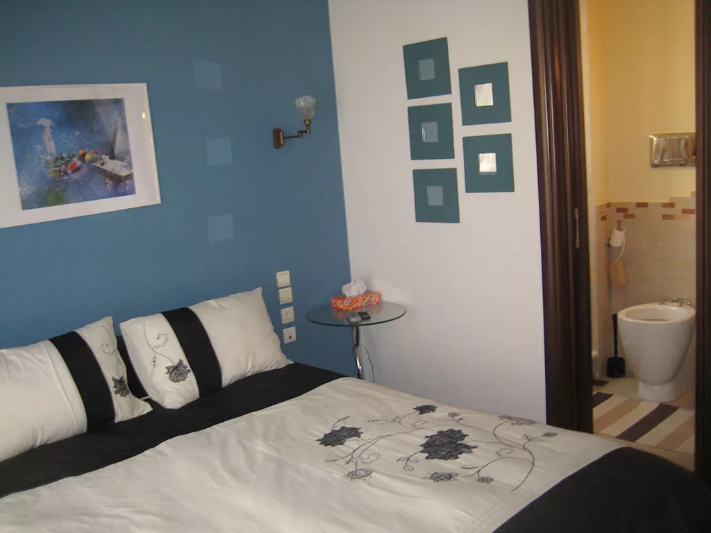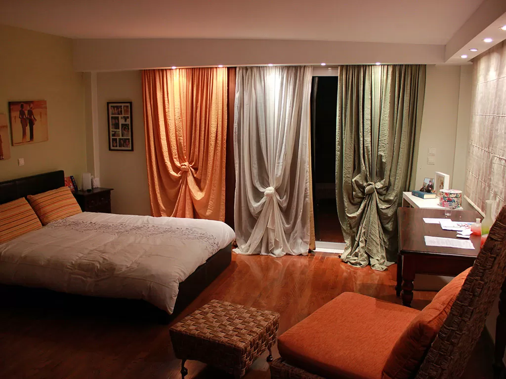 Верхний этаж: главная большая спальня с двуспальной кроватью, письменный стол, кондиционер, ванная комната.
