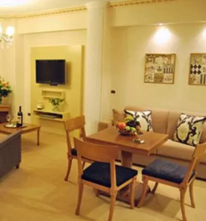 Suites (~55 кв. м) Состоит из гостиной и спальни (двуспальная кровать).Тип дополнительной кровати раскладной диван. 2 телевизора и рабочий стол. Меблированный веранда-балкон (~ 20 кв. м) с великолепным видом на Акрополь . Максимальное размещение до 3-х взрослых.
