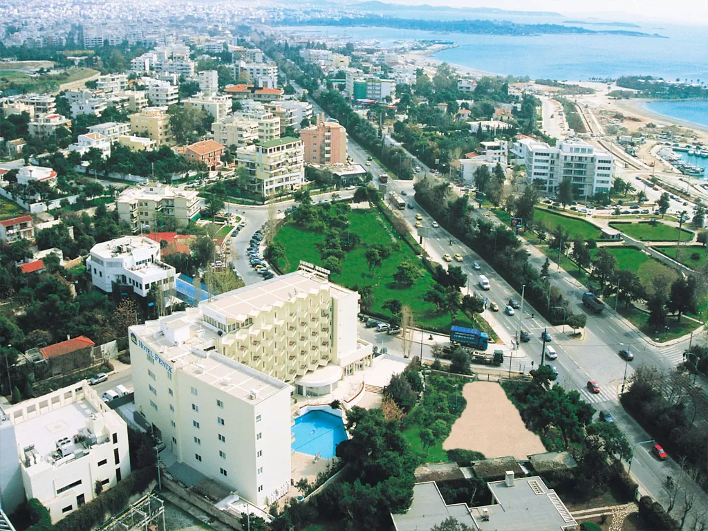 Отель состоит из пятиэтажного здания. Изысканный стиль, выбор просторных комфортабельных номеров, ресторан, бар, интернет, теннис, бассейн, конференц-услуги, обслуживание высокого класса. Расположен недалеко от торгового центра Cosmopolitan. Здесь множество причалов, пляжей и различных ночных развлечений. Идеально подойдет для комфортного отдыха в пригороде Афин.