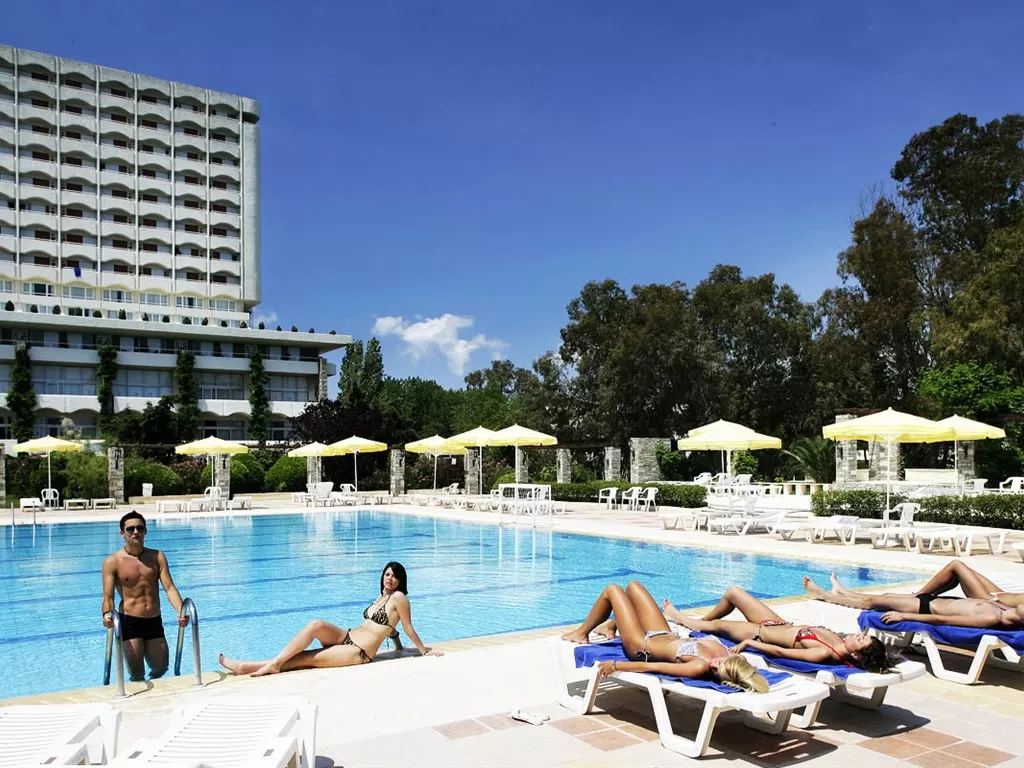 Автостоянка, бассейн (открытый с пресной водой), крытый бассейн (с пресной водой) бассейн олимпийских размеров, конференц-зал (2 конференц-зала вместимостью 800 чел. (780 кв.м) и 50 чел. (93 кв.м), могут быть использованы как банкетные залы на 1100 и 60 мест) секретарские услуги, церковь (часовня),магазин, обмен валюты.