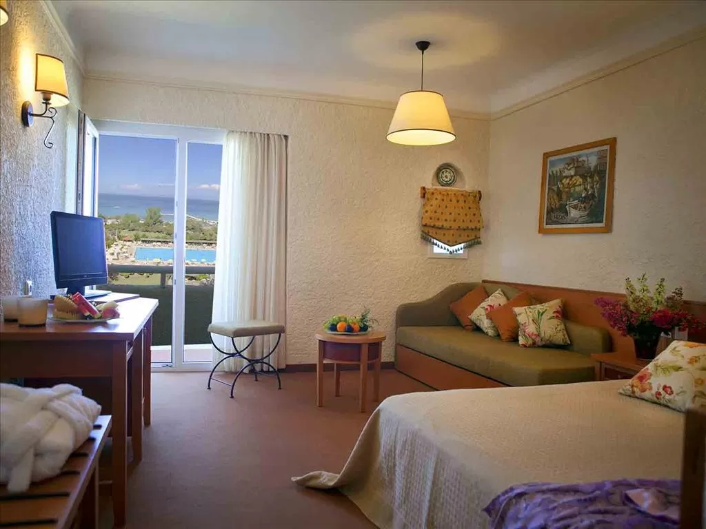 В номерах: центральный кондиционер (июль-август), спутниковое телевидение (российский канал), холодильник, сейф (за доплату), телефон, радио, ванна, фен, балкон, вид на море или на горы.