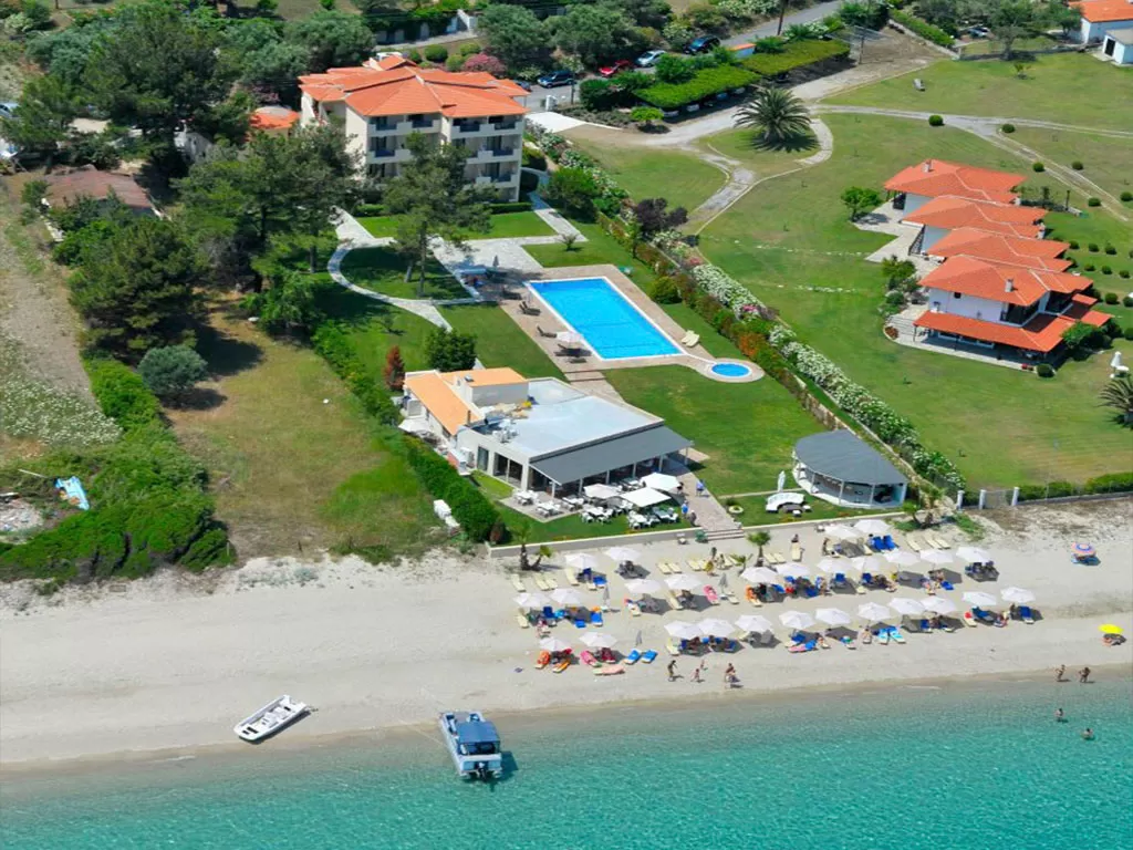 П-ов Кассандра, в 2 км от Полихроно (после пос. Криопиги), в 85 км от аэропорта «Македония» г. Салоники. Четырехэтажное здание. Лифта нет.