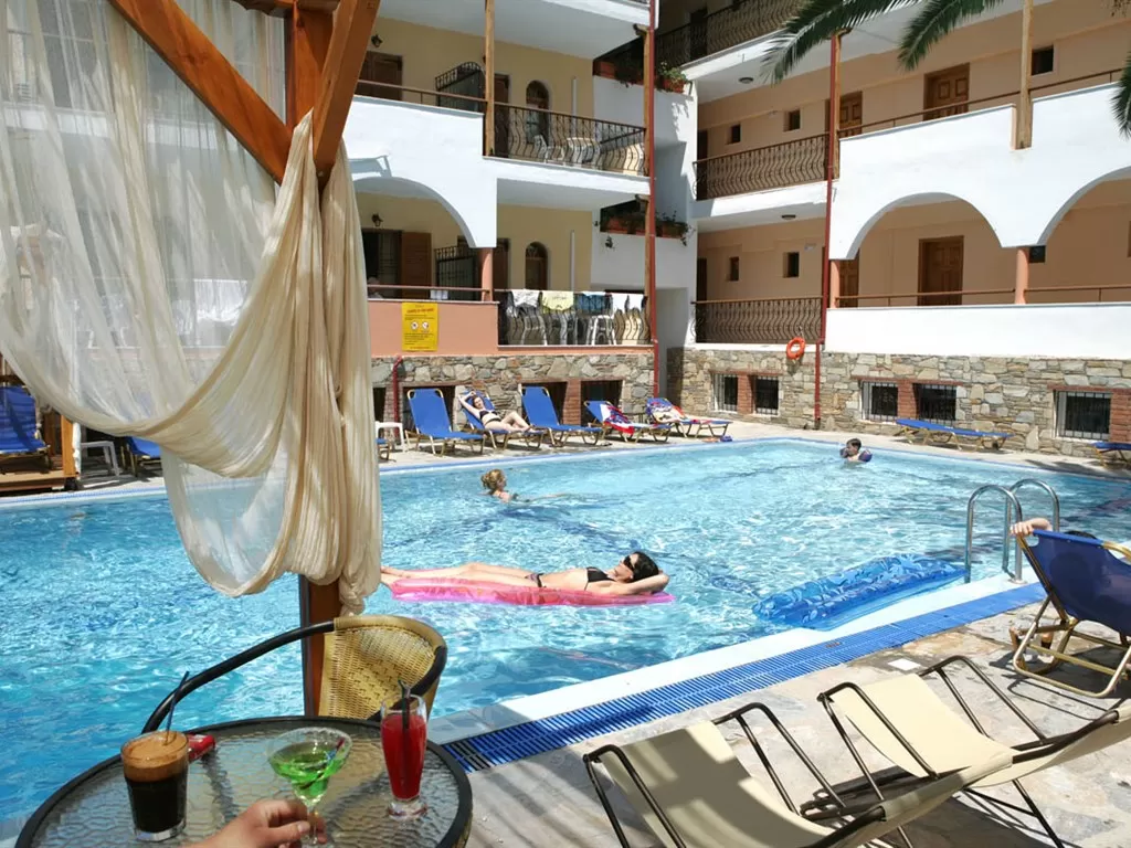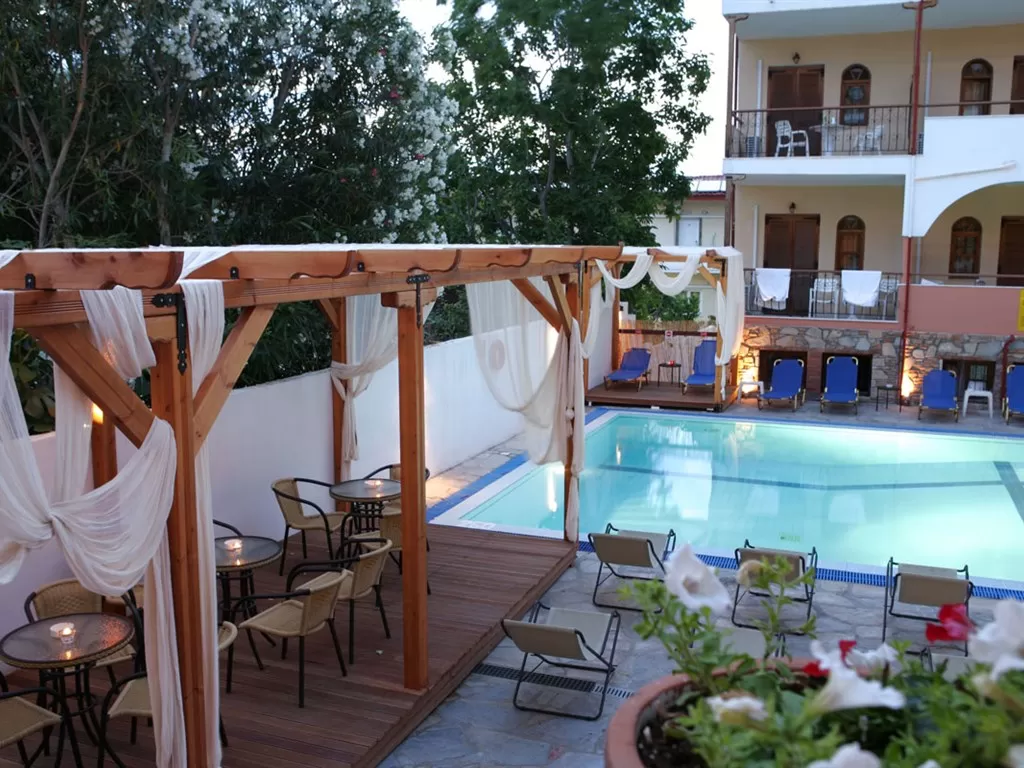 Небольшой отель в центре популярного курортного г. Ханьоти. Состоит их трехэтажного здания. Оригинальный стиль, уютные номера, ресторан, бары, бассейн, интернет, хороший сервис. В Ханьоти никогда не бывает скучно, каждый найдет развлечения по вкусу. Здесь множество магазинчиков, баров, ночных клубов, греческих традиционнных таверн. Подойдет как для семейного, так и для молодежного отдыха.