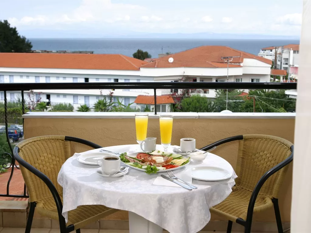 П-ов Кассандра, пос. Ханьоти, в 5 км от Полихроно, в 3 км от Пефкохори, в 85 км от аэропорта «Македония» г. Салоники. Полностью обновлен в 2008 году, стандартные номера и в 2011 году.