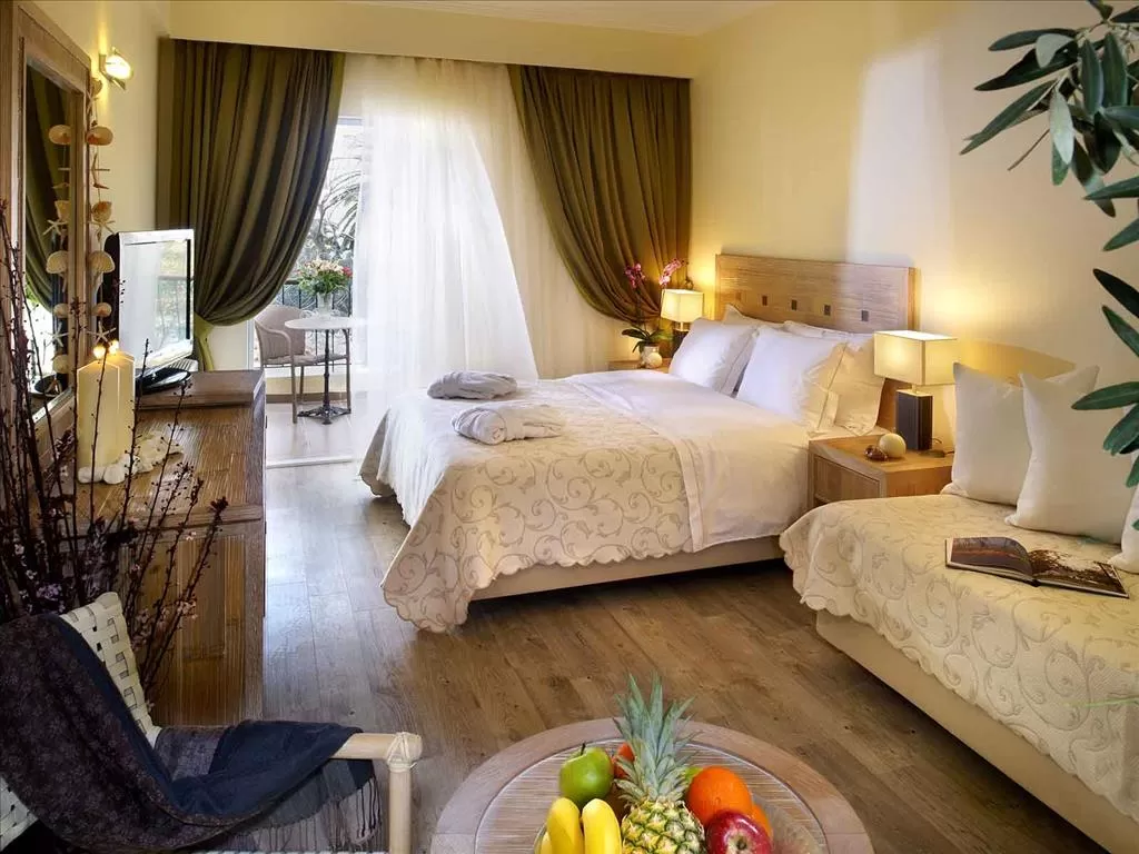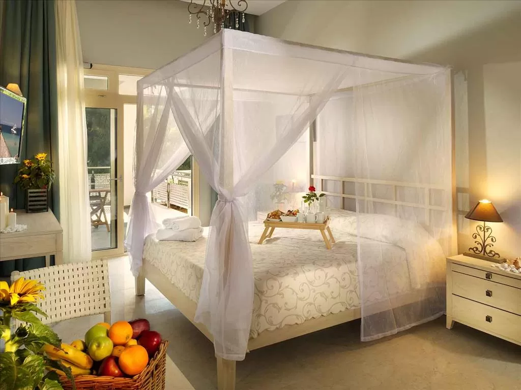 В номерах: центр. кондиционер, спутниковое телевидение (российский канал), холодильник, телефон, бесплатный Wi-Fi интернет, сейф (за доплату), фен, ванна/душ, балкон/терраса, вид на море или на сад.