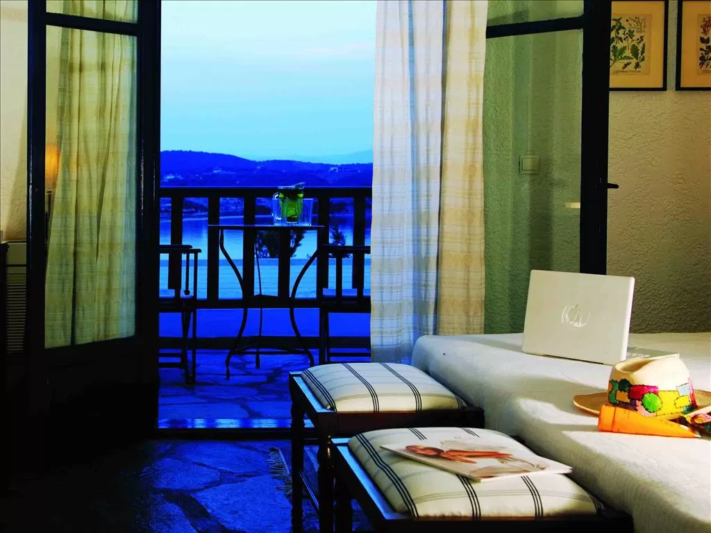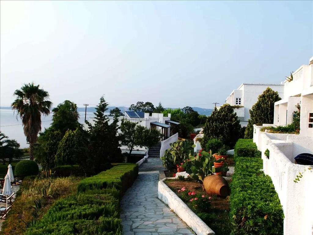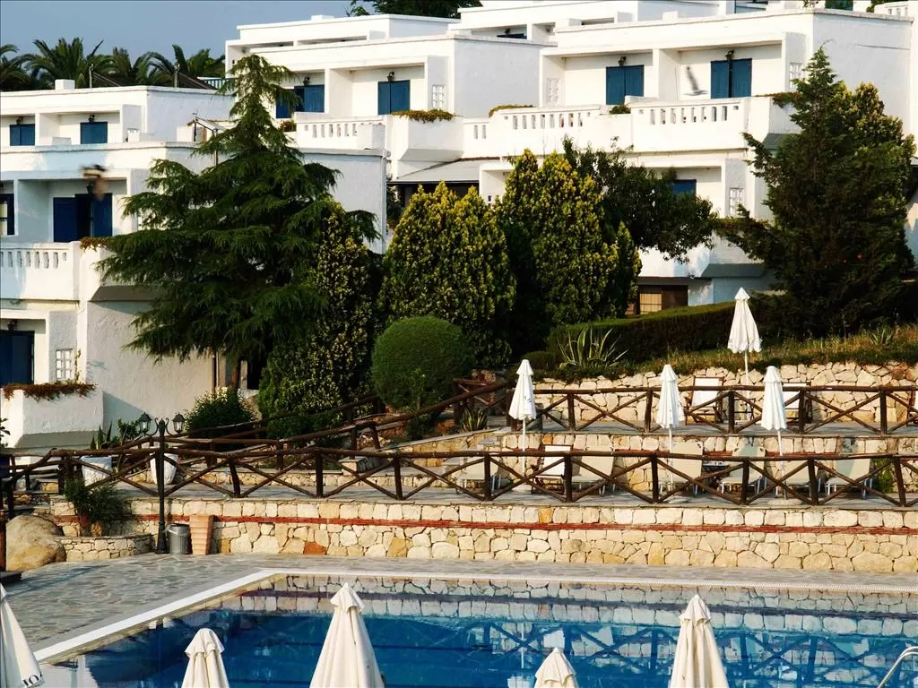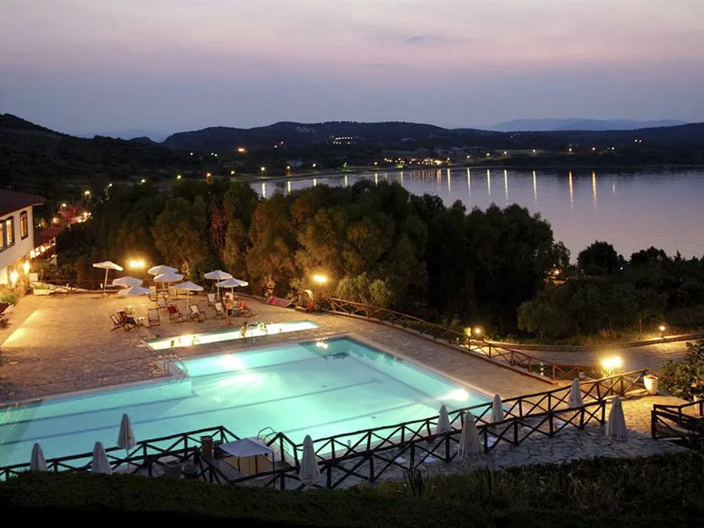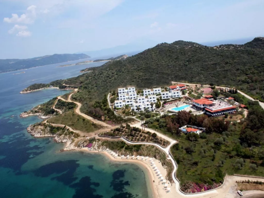 П-в Афон, островок Амульяни, несколько минут от г. Урануполи на пароме, в 125 км от аэропорта «Македония» г. Салоники. Награжден знаком Green Key, как отель отвечающий высшим экологическим стандартым.