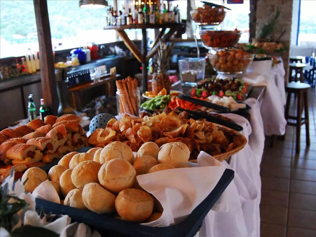 Во время ужина (на человека) предоставляется – 0,5 бутылки вина или 0,5 л пива или графинчик (100 мл) узо или прохладительный напиток (250 мл), а также 0,5 бутылки воды.