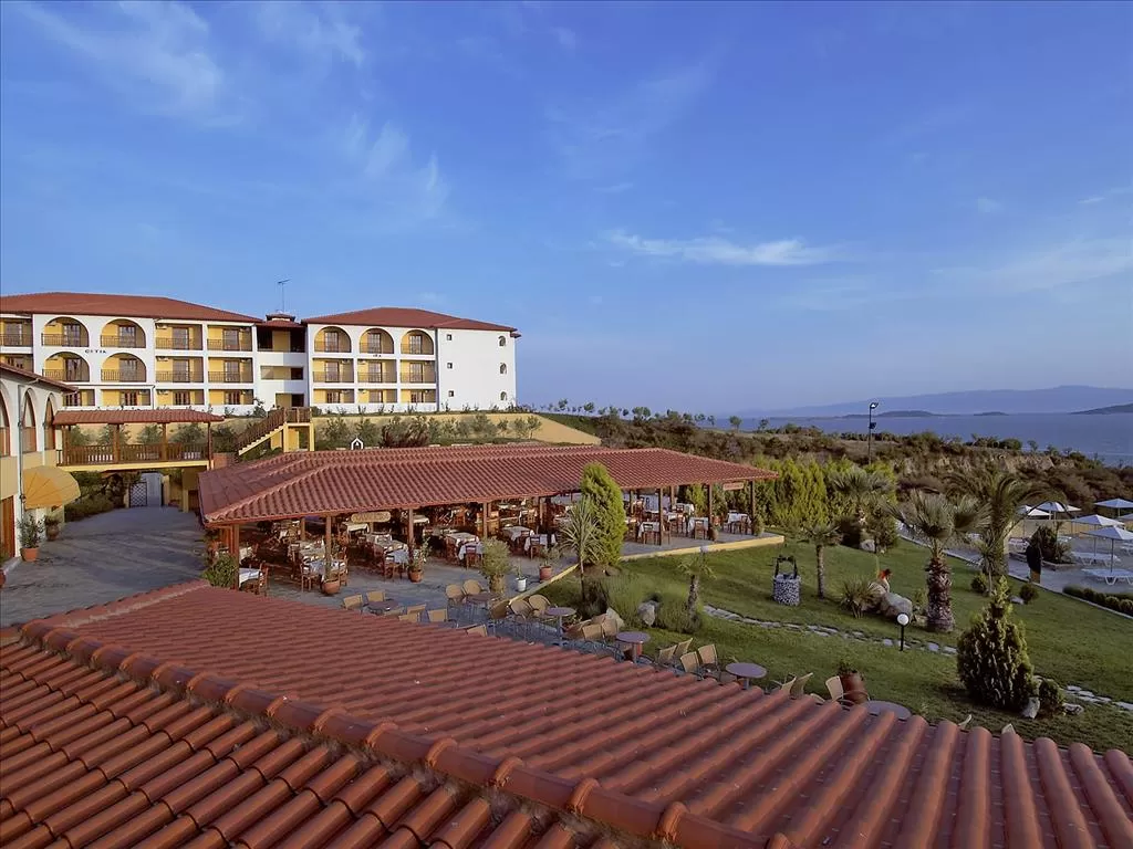 П-в Афон, в 1,2 км от г. Урануполи, в 8 км от Иериссос, в 125 км от аэропорта «Македония» г. Салоники. Общая площадь 13.000 кв.м. Полностью обновлен в 2010 г. Частично обновлен в 2012 г.Состоит из шести трехэтажных зданий, расположенных на зеленом холме. Отель подойдет для спокойного семейного отдыха.