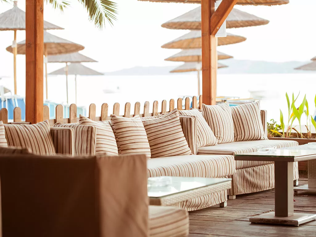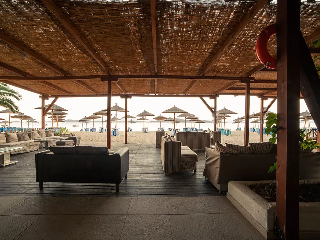 Зонты(плата за напитки в баре на пляже), лежаки(плата за напитки в баре на пляже), песчаный пляж(в 120 м, через частный подземный переход), пляжные полотенца -за доплату.