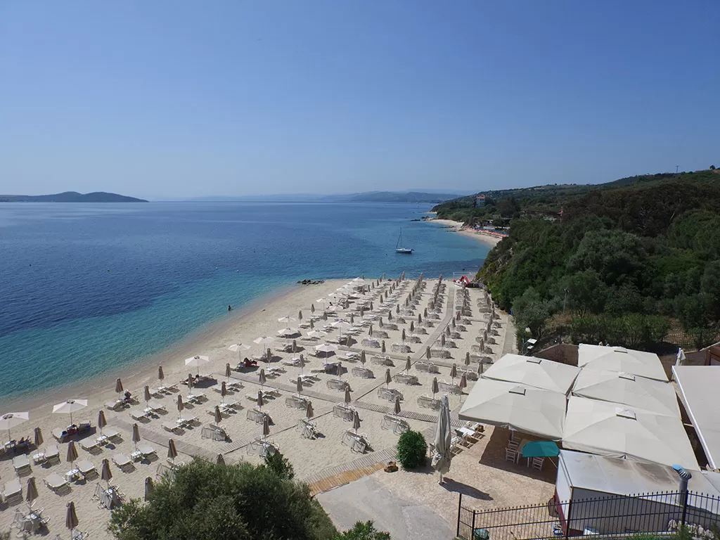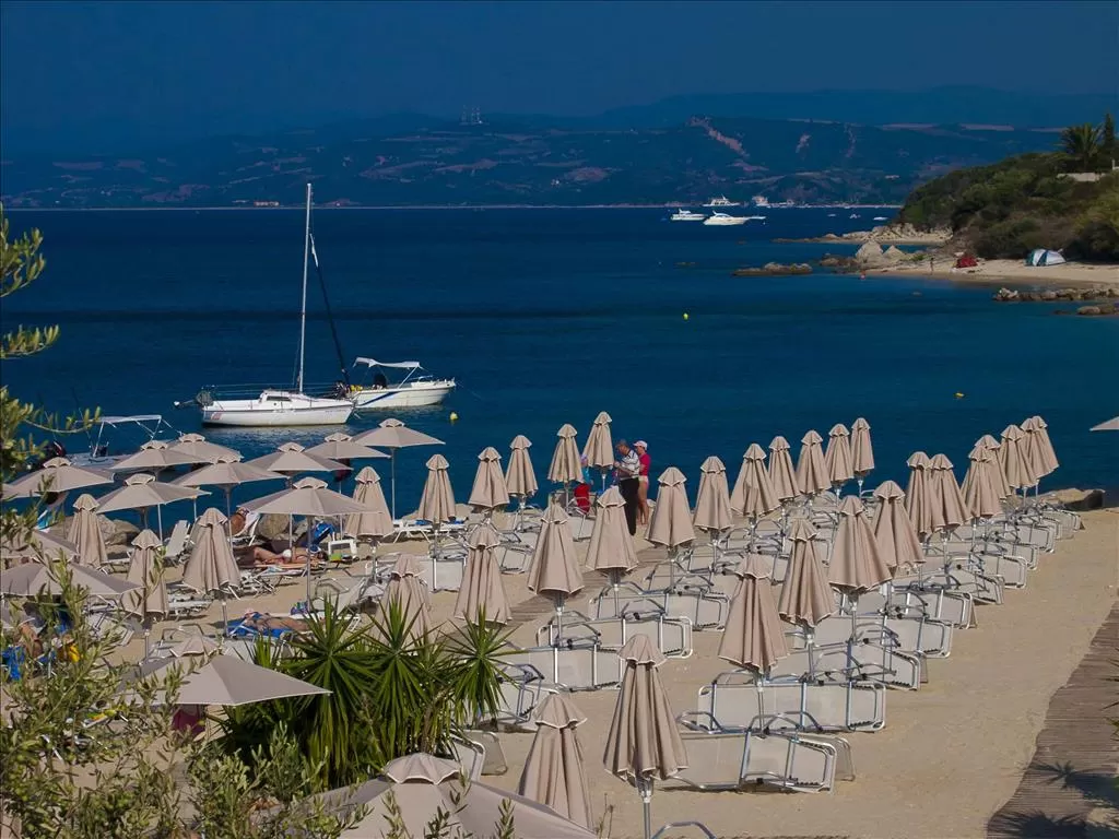 П-ов Афон, 3 км от г. Урануполи, 125 км от аэропорта «Македония» г. Салоники. Отель расположен недалеко от живописного городка Урануполи, откуда можно отправиться в круиз вокруг юго-западного побережья Афона. Состоит из десяти двухэтажных и трехэтажных зданий. Общая площадь 134.000 кв.м. Идеальное место для семейного отдыха.