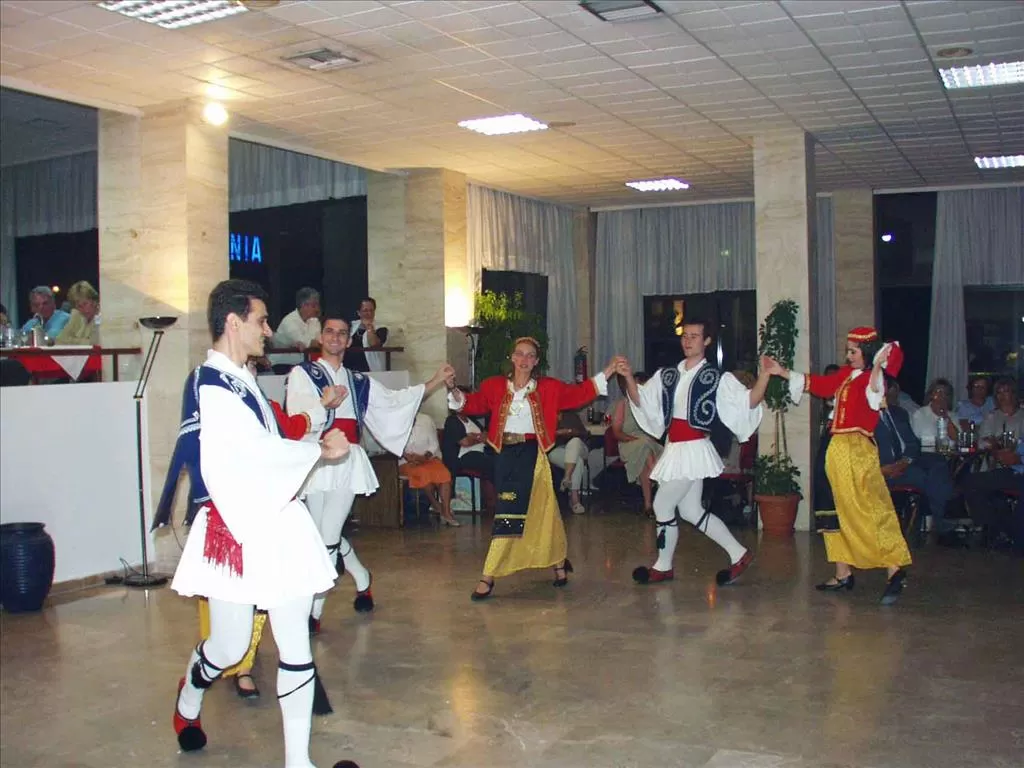 Напитки: 3 вида разливного домашнего вина (белое, красное, рецина), узо, бочковое пиво, местные прохладительные напитки, соки, вода, фильтрованный кофе.