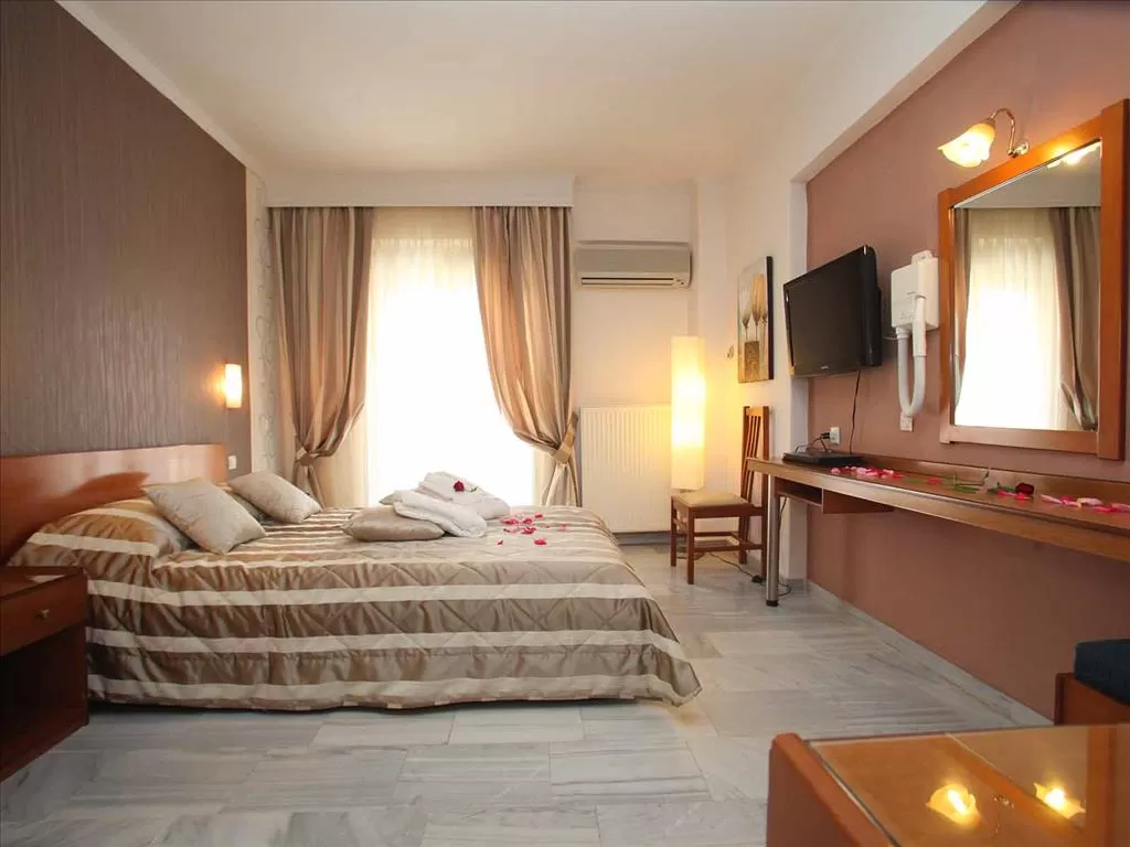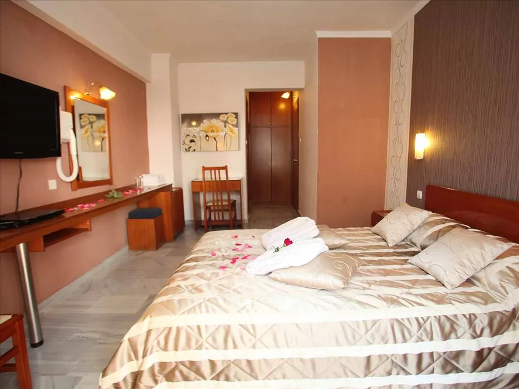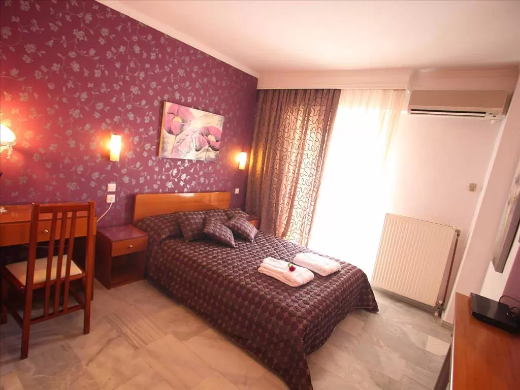 Небольшой отель состоит из трехэтажного здания. Простота стиля, комфортабельные уютные номера, бар, бассейн, качественное обслуживание. Рядом с отелем находится множество магазинов, сувенирных лавок, модных баров. Разнообразить свой отдых вы сможете прогулкой в прохладе зеленого городского парка или экскурсией в г. Салоники.