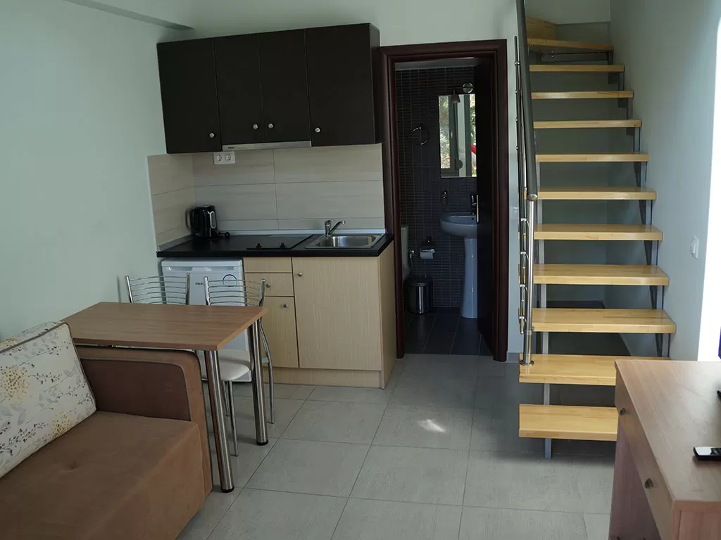 Apartment Нижний этаж – гостиная с мини-кухней, раскладывающийся диван 200/140, душевая/WC, верхний этаж - 1 двуспальная (или 2 односпальные) кровати.