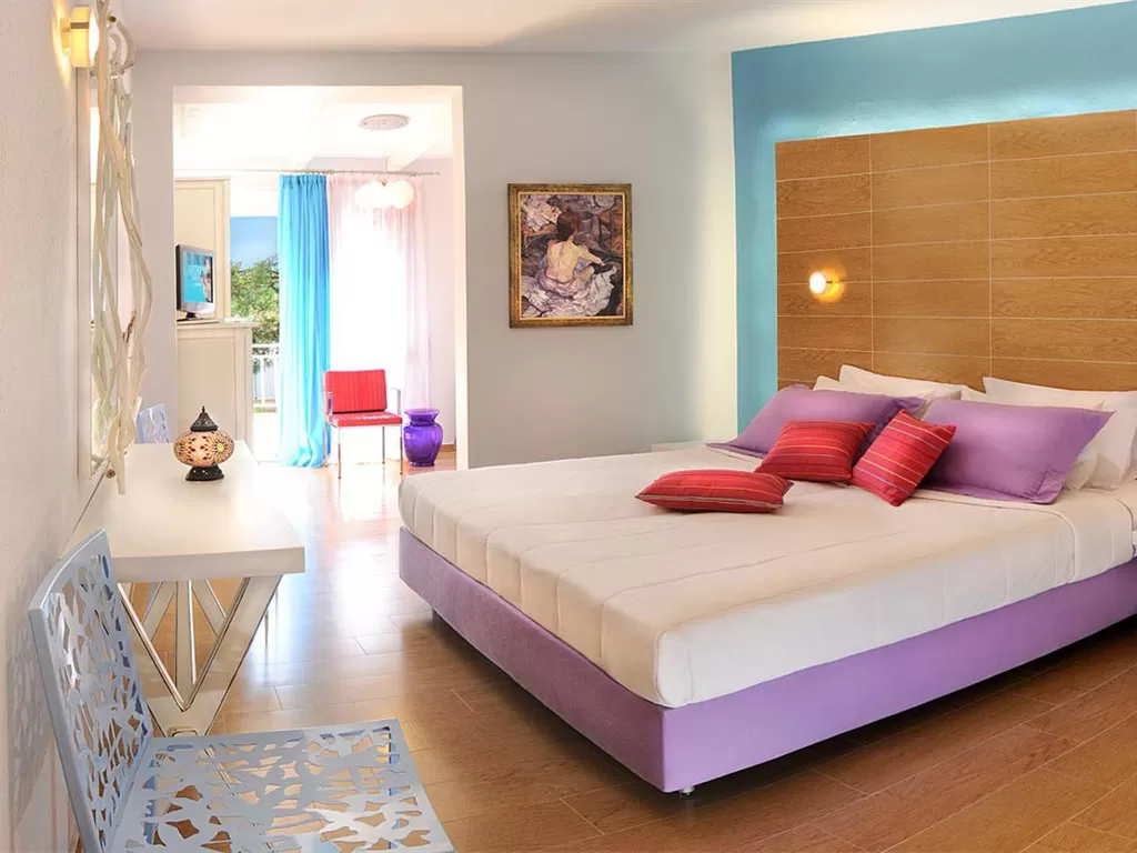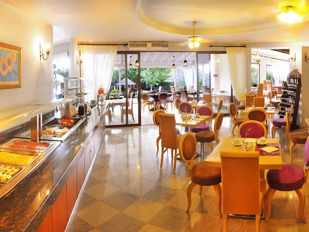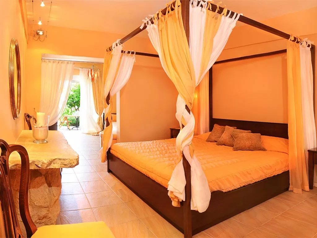 В номерах: персональный кондиционер, мини-бар (за доплату), прямой телефон, спутниковое телевидение (российский канал), телевизор Плазма, бесплатный Wi-Fi интернет, cейф (бесплатно), ванная комната (душ, с гидромассажем - в некоторых номерах), фен, туалетный набор, балкон/терраса. Double Deluxe SV Расположены на разных этажах, вид на море. Junior Suite Расположены в центральном здании, на 1-ом этаже. Совмещённые гостиная и спальня, большая веранда. Идеальные сюиты для отдыха с детьми. Deluxe Suite Расположены на 2-ом этаже центрального здания, вид на море. Комфортный салон, спальня, большая ванная комната, набор для чая/кофе (эл. чайник), джакузи на балконе. Смена белья – 4 раза в неделю. New! Executive Suite Семейная сюита расположена на верхнем этаже. Салон с раскладным диваном, маленький кухонный уголок (раковина, электрочайник, кофе-машина), 2 ванных комнаты (одна с ванной джакузи, вторая с душевой кабиной с гидромассажем и хроматотерапия), 2 отдельных спальни (двуспальная кровать и 2 односпальные), балкон.
