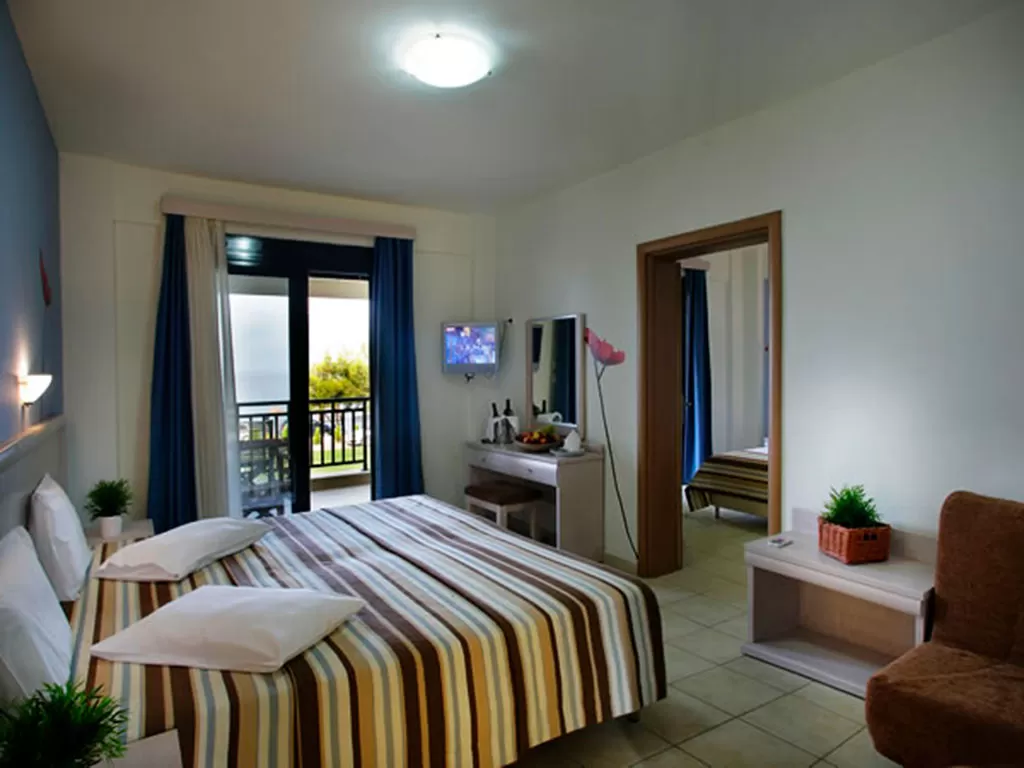 Маленький уютный отель прямо напротив пляжа. Красивая территория, современный стиль, просторные комфортабельные номера, оригинальный открытый бар, интернет, качественное обслуживание. Расположен в легкой доступности от центра пос. Неос Мармарас с активной курортной жизнью.П-ов Ситония, в 500 м от центра п. Неос Мармарас, 115 км от аэропорта «Македония» г. Салоники. Отель состоит из трехэтажного здания. Курсирует паровозик до центра целый день (за небольшую плату).
