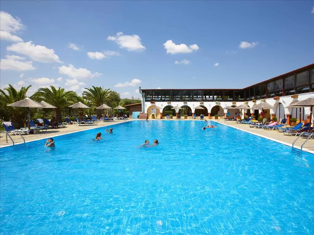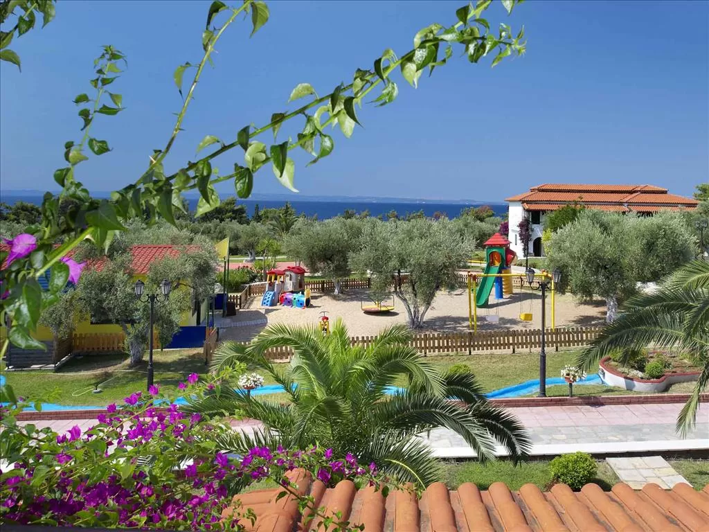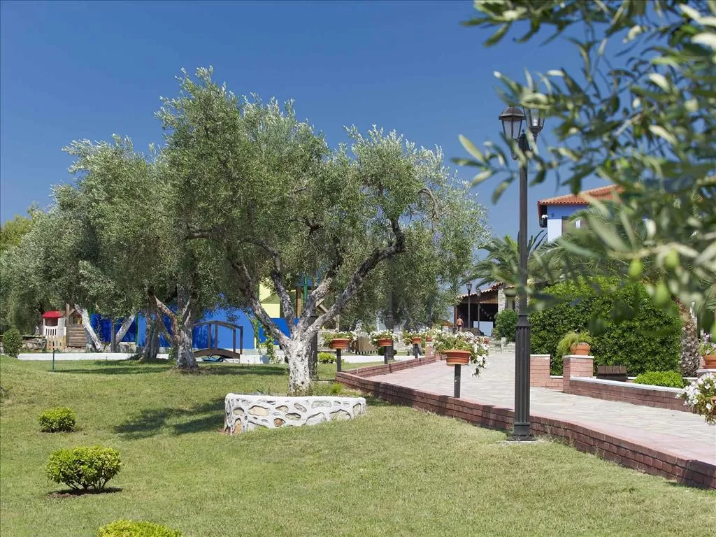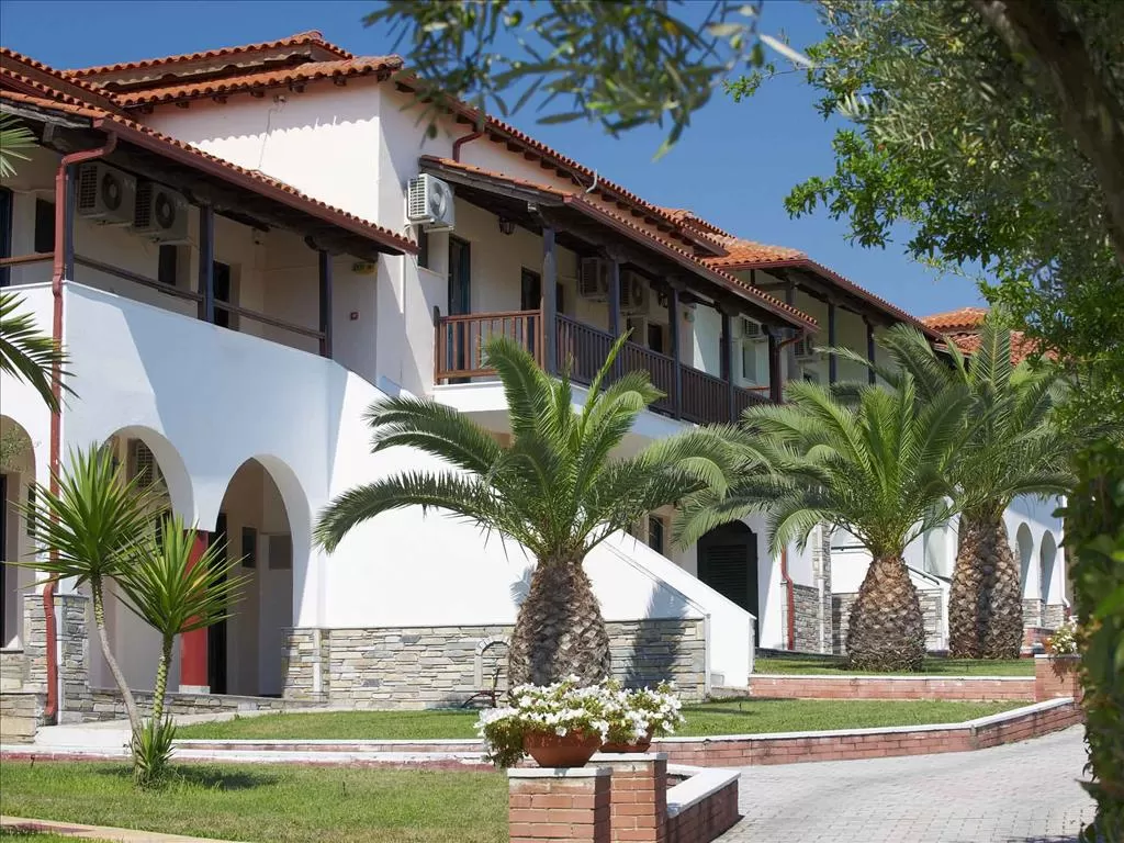 Полуостров Ситония, в 1,5 км от пос. Метаморфоси, в 85 км. от аэропорта «Македония» г. Салоники. Отель построен в традиционном македонском архитектурном стиле, посреди ухоженного сада с цветами, оливковыми и сосновыми деревьями. Состоит из 15-и корпусов-бунгало.