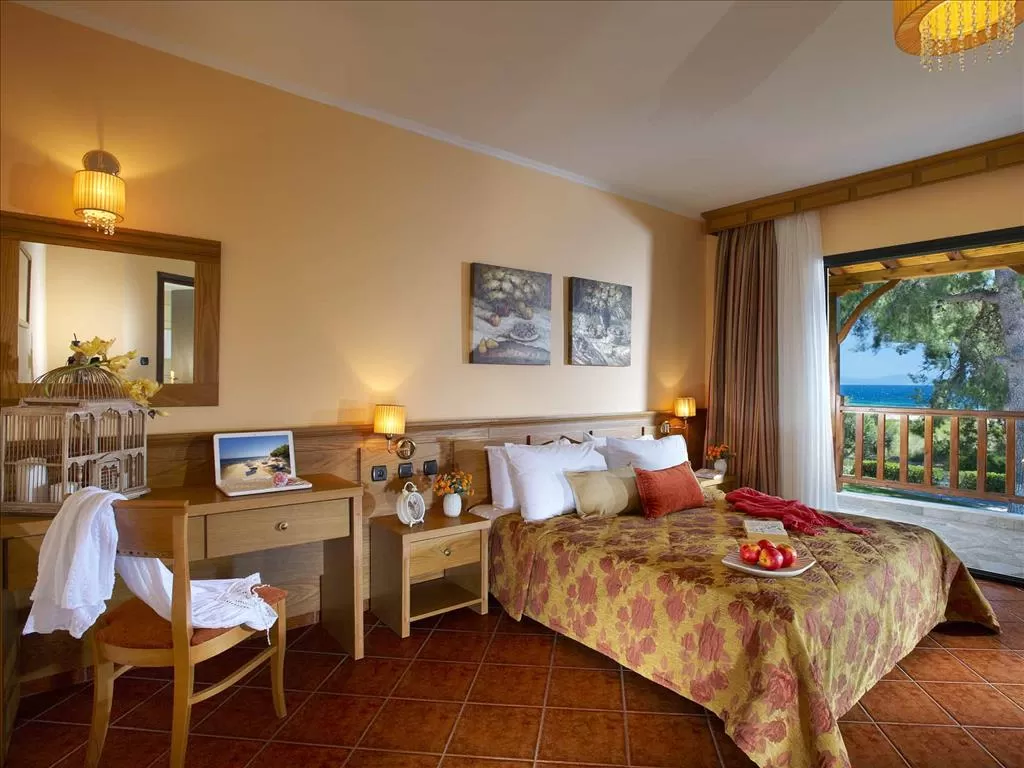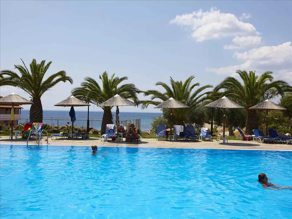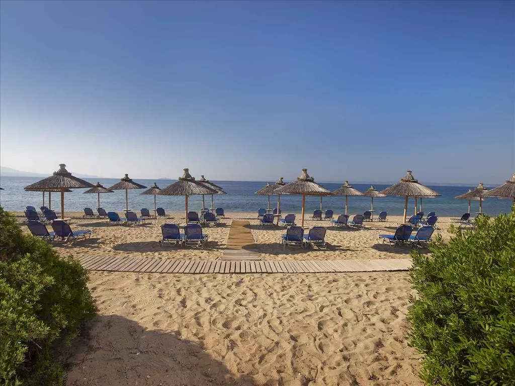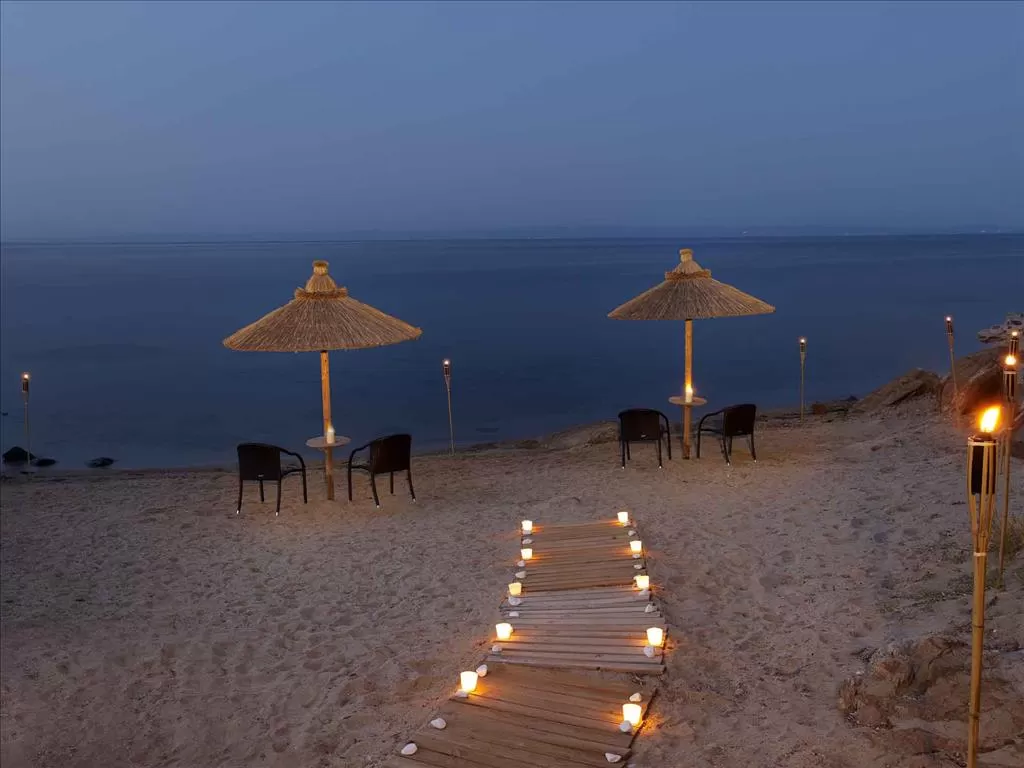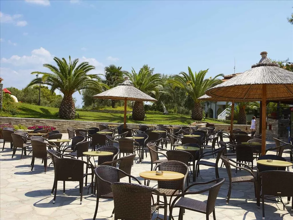 Полуостров Ситония, в 1,5 км от пос. Метаморфоси, в 85 км. от аэропорта «Македония» г. Салоники. Отель построен в традиционном македонском архитектурном стиле, посреди ухоженного сада с цветами, оливковыми и сосновыми деревьями. Состоит из 15-и корпусов-бунгало.