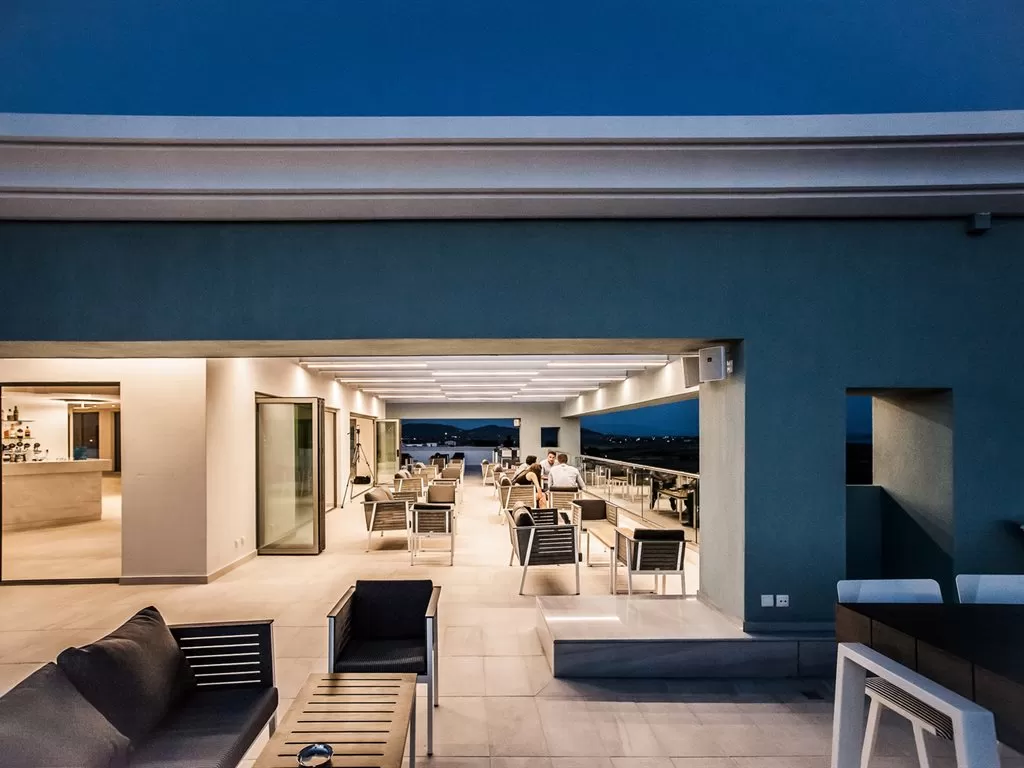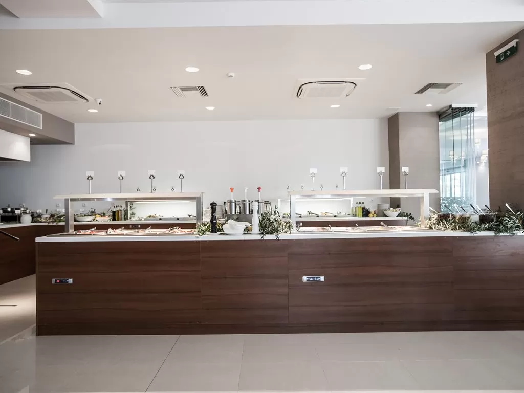 Главный ресторан с тематической кухней (греческая, итальянская, арабская, морепродукты, гриль. Для детей 2 блендера и одна микроволновая печь), Sky Bar с роскошным панорамным видом на морское побережье (средиземноморская и европейская кухня) Заказ бесплатного lunch –пакета.