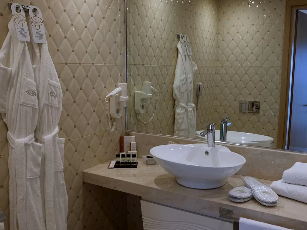 В номерах: кондиционер, мини-бар, телефон, бесплатный Wi-Fi интернет, сейф (бесплатно), ванная комната (ванна/душ), фен, халаты, косметические принадлежности, спутниковое телевидение, балкон/терраса.