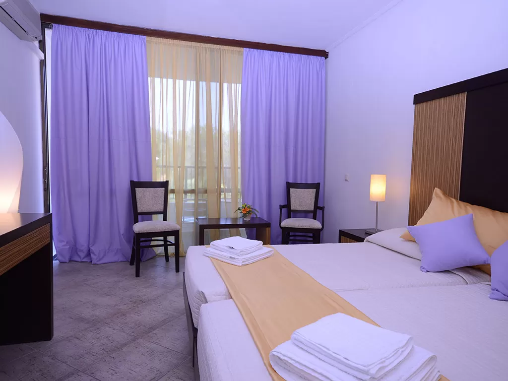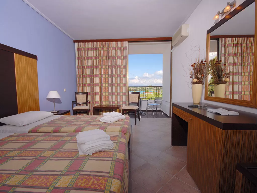 В 300 м от центра поселка Гувья, в 8 км от г. Корфу, в 7 км порта и аэропорта. Четырехэтажное здание. Частично обновлен в 2014 г.