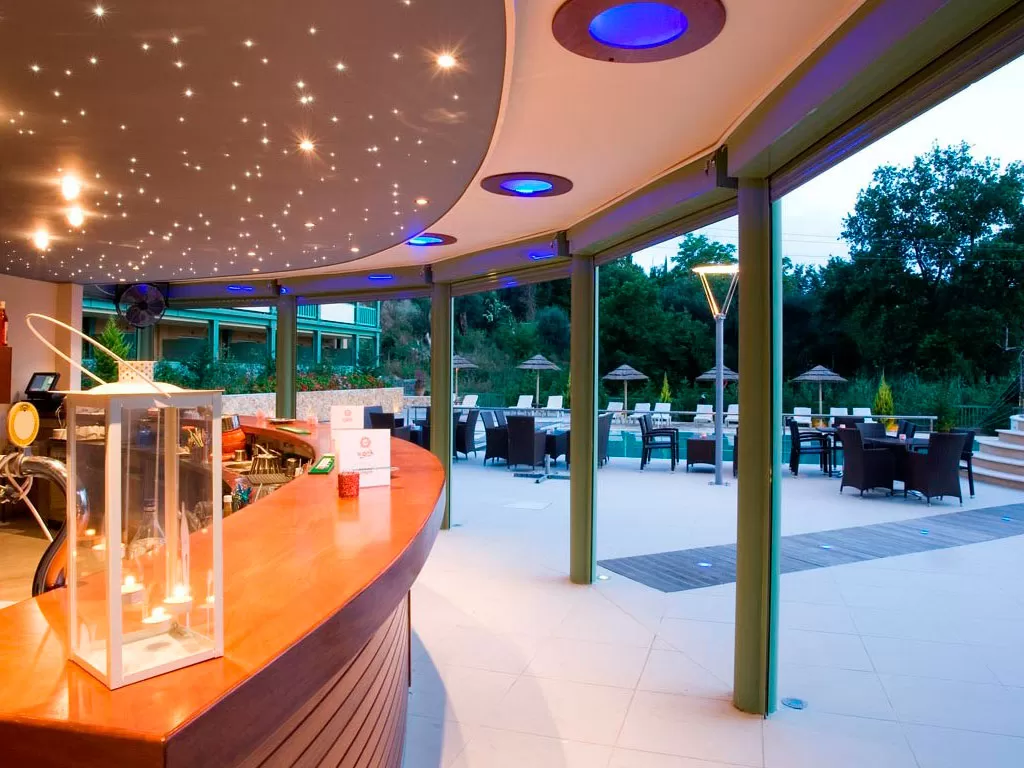 Автостоянка, Бассейн (с пресной водой), врач(по вызову), бесплатный Wi-Fi интернет в номерах и общественных местах, конференц-зал ( 30 кв.м. и 90 кв.м) – вмест. от 30 до 80 чел., обслуживание номеров, сейф на рецепции – (бесплатно),автобусная остановка рядом с отелем. Регулярно курсирует муниципальный автобус до г. Корфу и пляжа Мон Репос. Бар у бассейна, главный бар, ресторан.