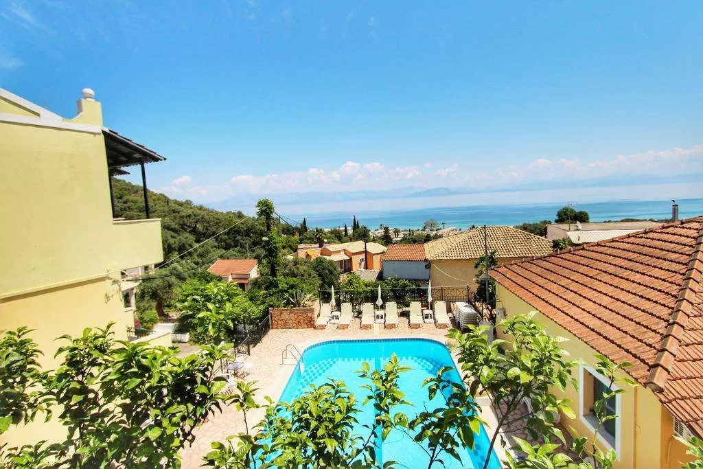 Расположен в центре деревни Мораитика острова Корфу, в 600 метрах от пляжа.