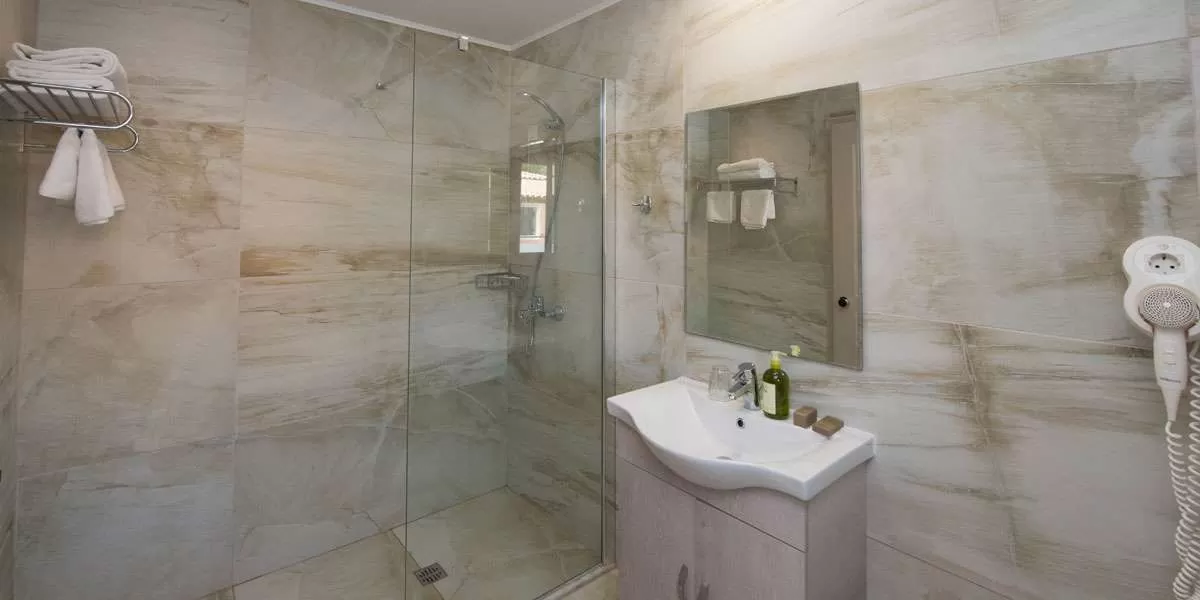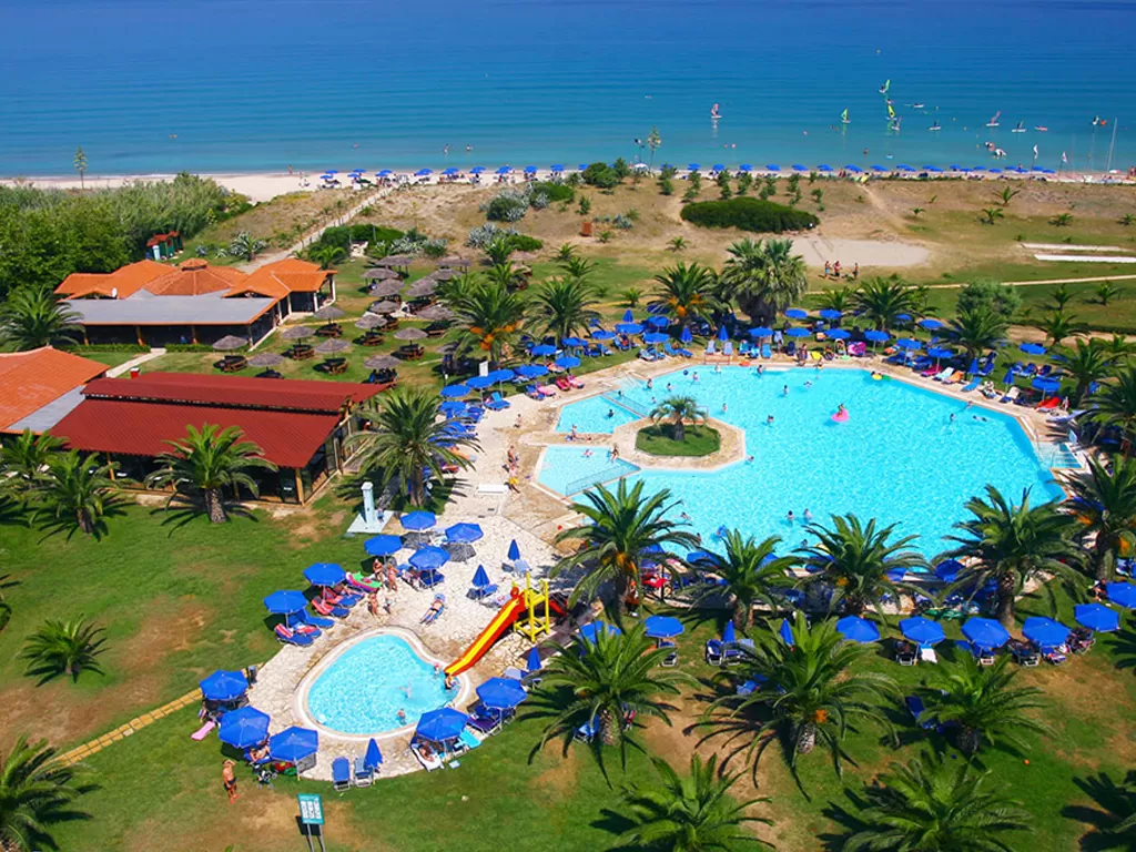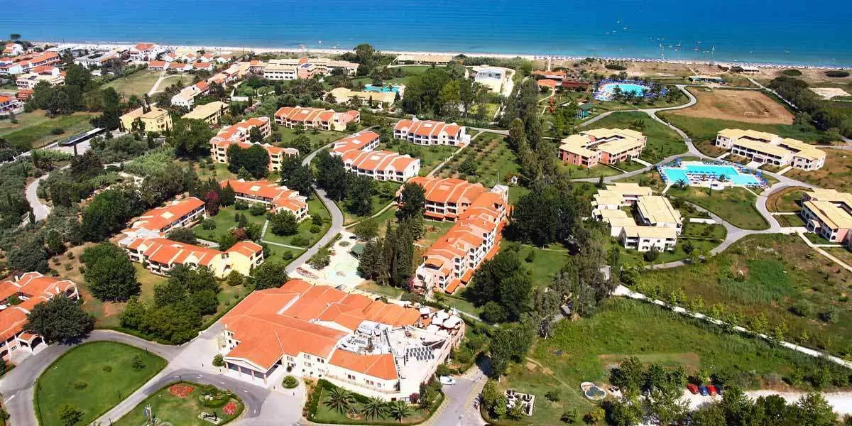 Северная часть острова, в 500 м от центра пос. Ахарави, в 37 км от г. Корфу и аэропорта. Состоит из 12-ти зданий.