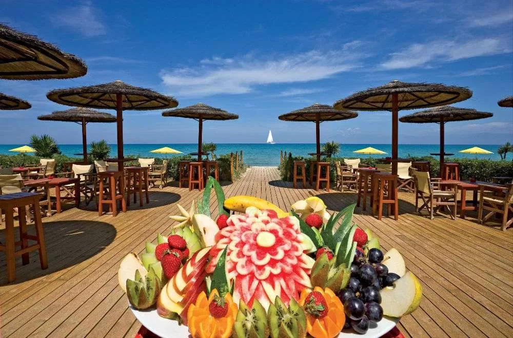Большая территория, протяженный пляж, аквапарк, выбор комфортабельных номеров, ресторан, бары, бассейн, сад, магазины, детский клуб, спа-центр, спорт и развлечения, обслуживание высокого уровня.