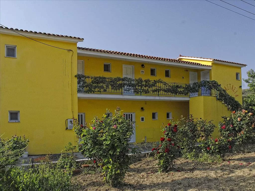В 500 м от центра пос. Кательёс, в 30 км столицы острова г. Аргостоли и аэропорта. Небольшое двухэтажное здание.