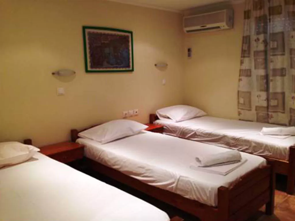 Studio 4 pax 4 односпальные кровати или 2 односпальные кровати (объединенные) и 2 односпальные кровати (раздельно). Ежедневная уборка номеров, смена белья – 1 раз в неделю.
