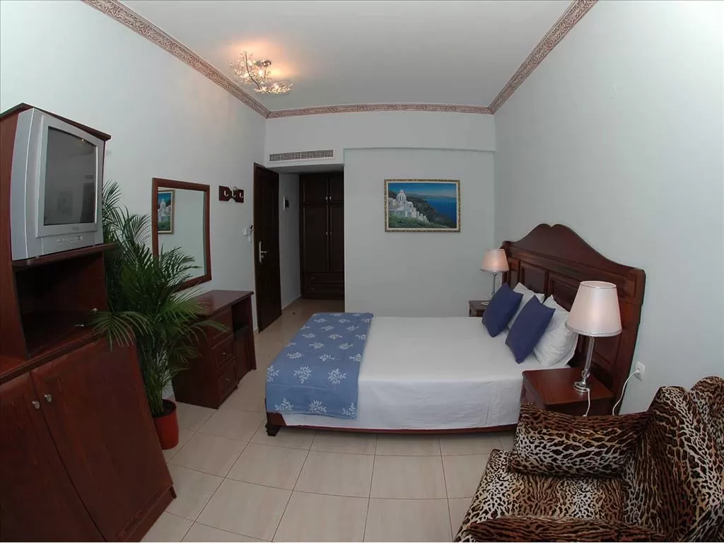 сейф (бесплатно), холодильник, душ, фен, радио, балкон. Двуспальная кровать или