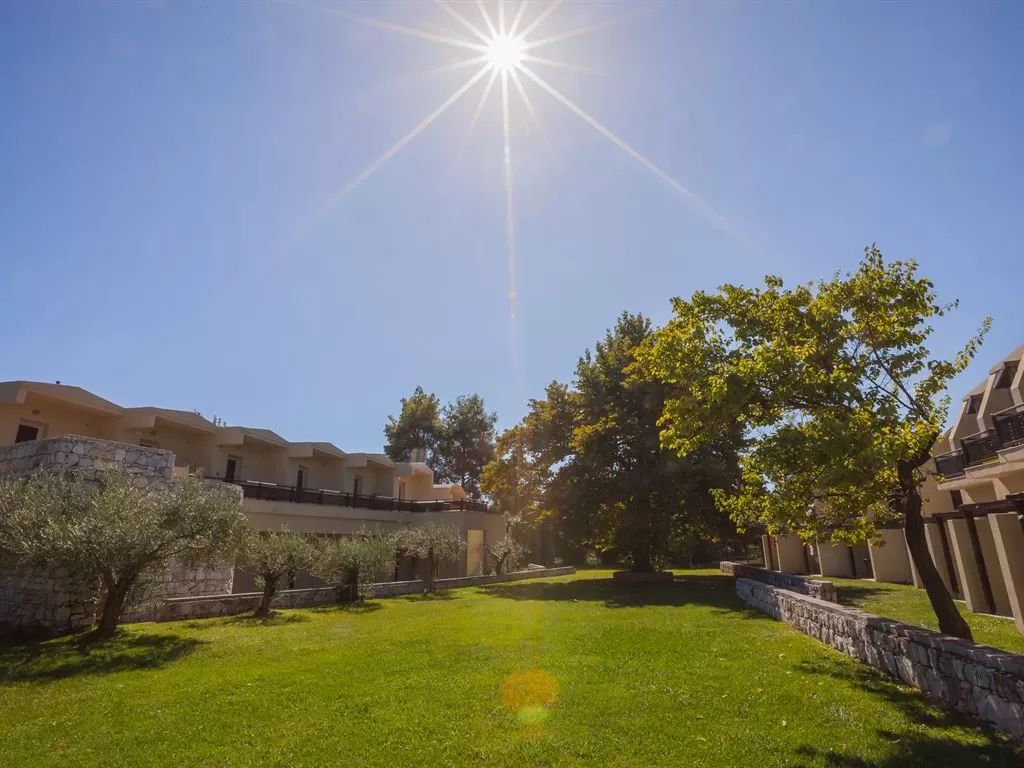 Всего 264 номера: Double Rooms Olympus View/Sea View (~19 кв.м), Doubles SSV (~19 кв.м), Double Bungalows Olympus View/Garden View (~19 кв.м), Family Rooms Sea View/Olympus View (~38 кв.м), Family Bungalows (~23 кв.м), Suites Sea View/Olympus View (~35-40 кв.м).