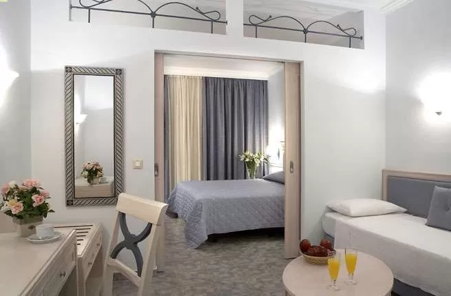 Все номера просторны, оборудованы кондиционером, собственным балконом или верандой с видом на море или сад и бассейн. Кровати оснащены анатомическими матрасами. Кроме того, в каждом номере есть спутниковое телевидение, холодильник и фен.