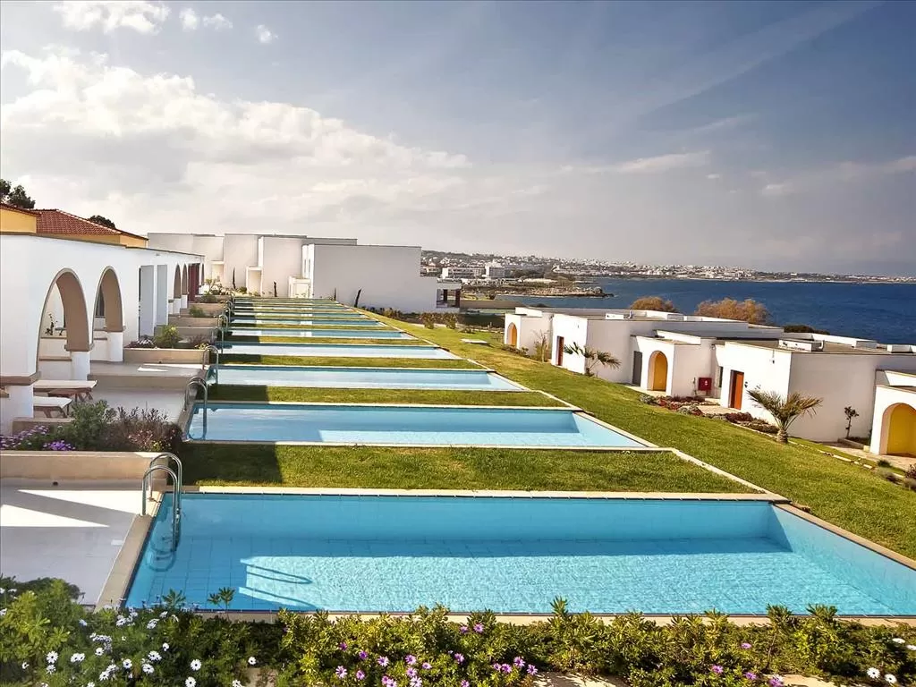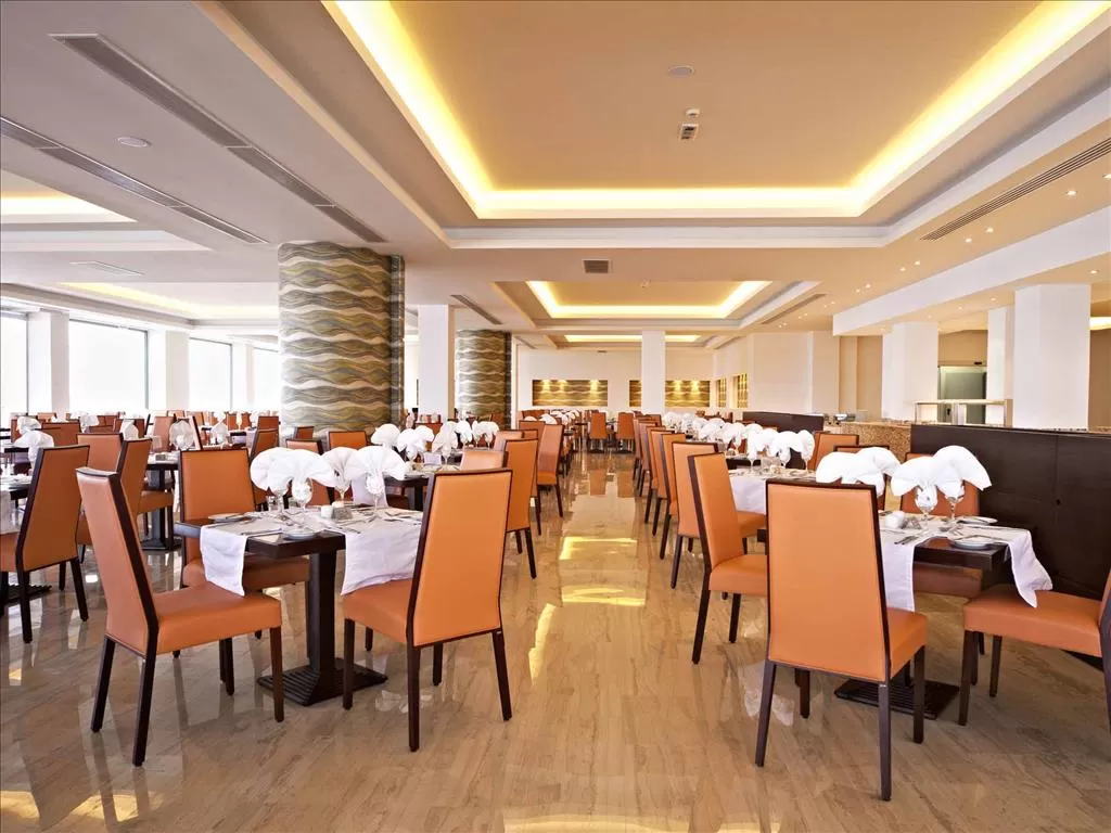4 ресторана: центральный Αthina, у бассейна porta Di Mare, 2 ресторана a la carte (итальянский и греческий)