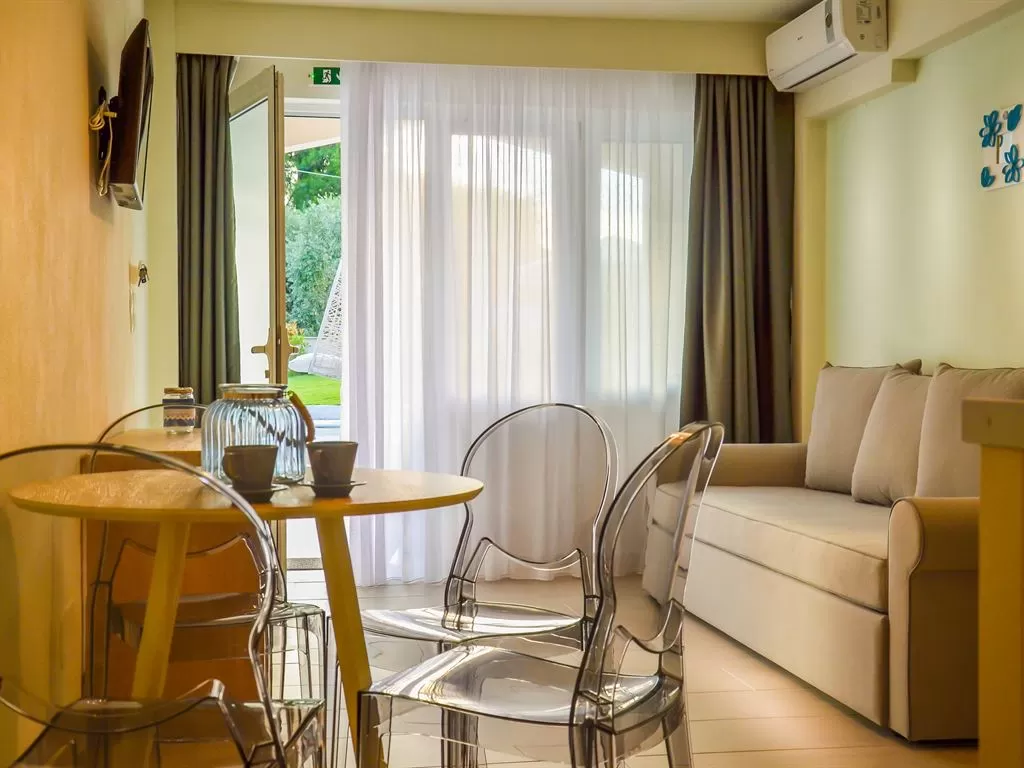 - 1-Bedroom Family Apartments GV (~38 кв.м) - двухкомнатные апартаменты. Спальня с двуспальной кроватью, диван-кровать, кухонный уголок. Расположены на первом этаже (ground floor), большой балкон;