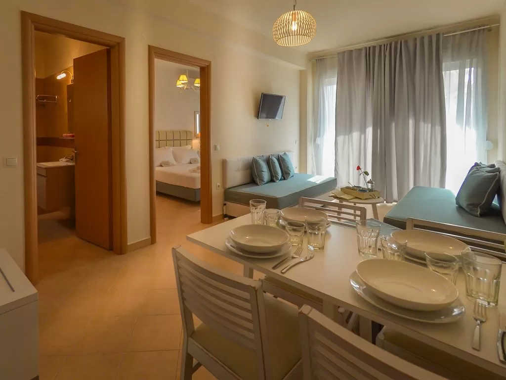 - 1-Bedroom Elegant Аpartments (~42 кв.м) - двухкомнатные апартаменты. Спальня с двуспальной кроватью, гостиная с 2-мя диван-кроватями, кухонный уголок.