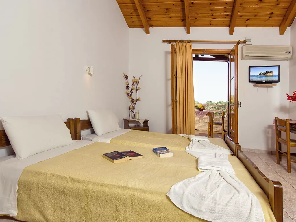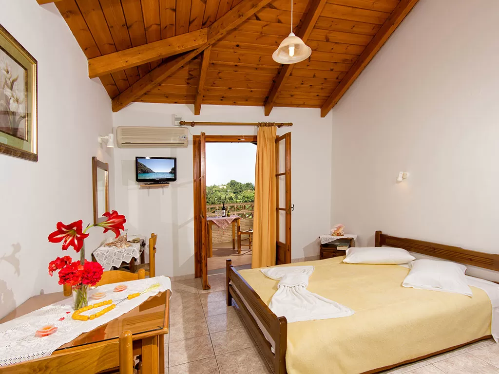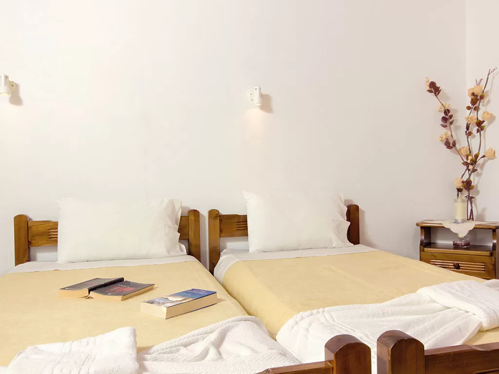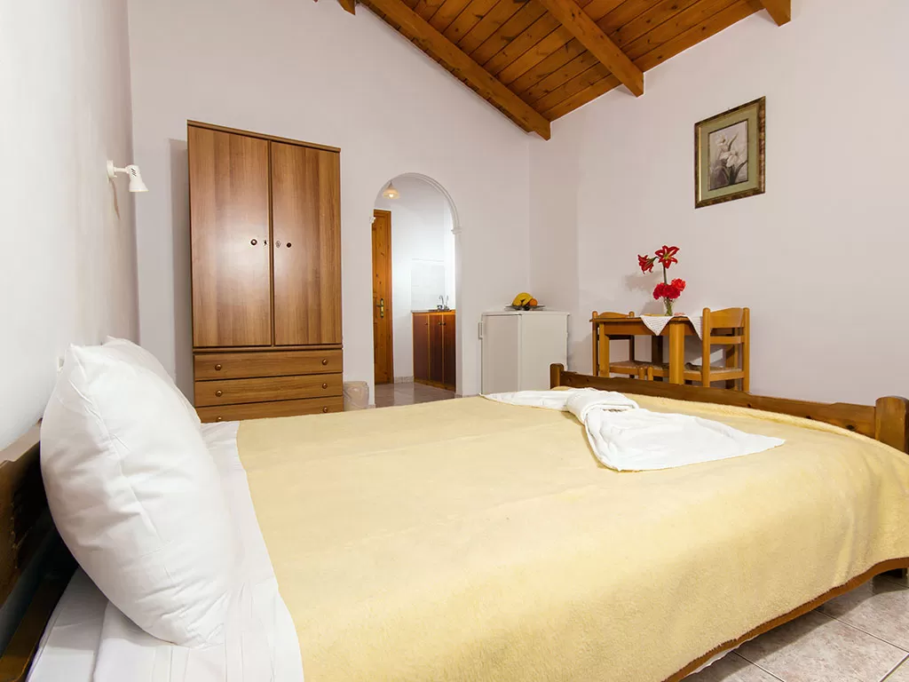 Всего 19 номеров: Studios (~20 кв.м), Studios min 3 pax (~23 кв.м), Apartments 2-Brooms (~50 кв.м), Apartments Superior 2-Brooms (~55 кв.м).