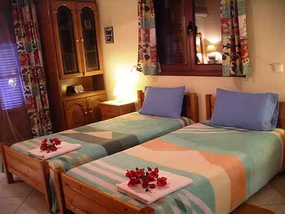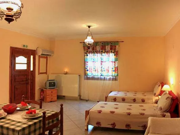 Маленький отель утопающий в окружении зеленой растительности. Просторные номера с оборудованной кухней. Сердце деревни с вереницей великолепных таверн, подающих традиционную греческую кухню, находится всего в 5-ти минутах ходьбы. В некоторых тавернах звучит живая греческая музыка и исполняются традиционные песни о любви (серенады). Идеальное место для спокойного экономичного отдыха.