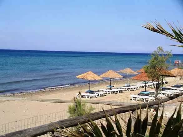 Зонтики за доплату Лежаки за доплату Песчано-галечный пляж, местами небольшие камешки, в 150 м. - пляж Банана (протяженностью 1,5 км). Дорога к пляжу через зеленую рощу.