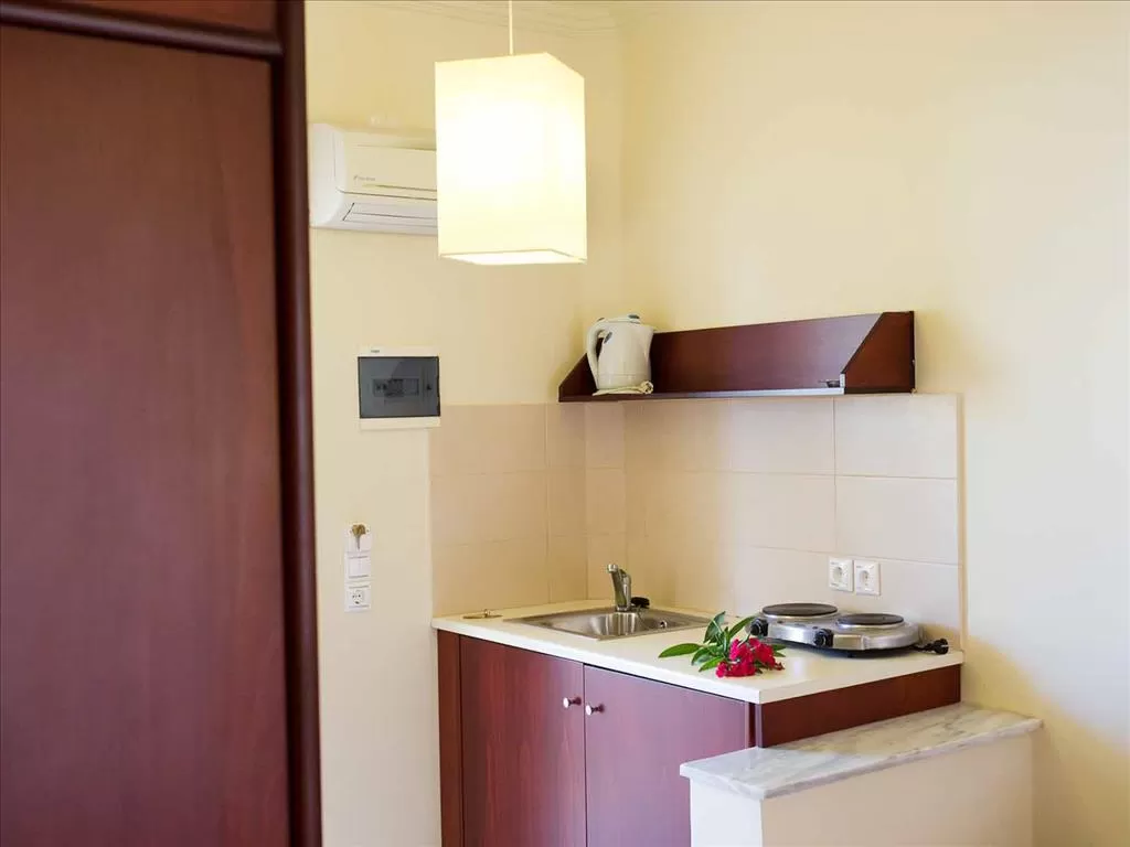 Небольшой отель с уютной территорией. Просторные комфортабельные номера с кухонным уголком, ресторан, бар, бассейн, детская площадка, интернет, качественное обслуживание. В легкой доступности центр популярного пос. Лаганас с множеством магазинчиков, греческих таверн и баров. Отель подойдет для экономичного семейного отдыха.
